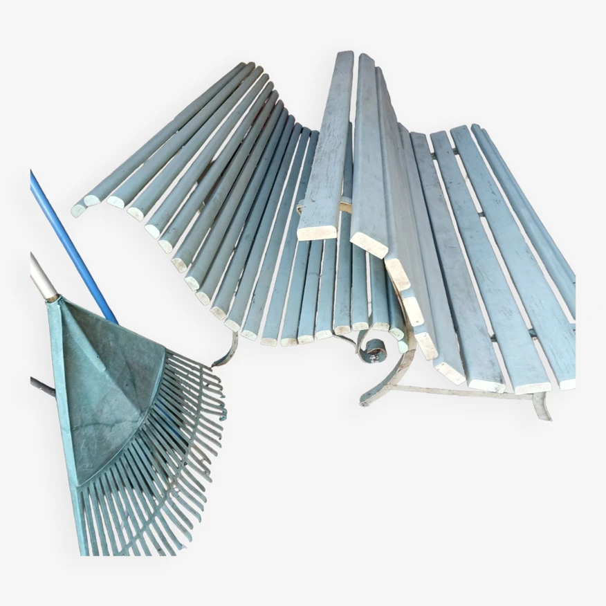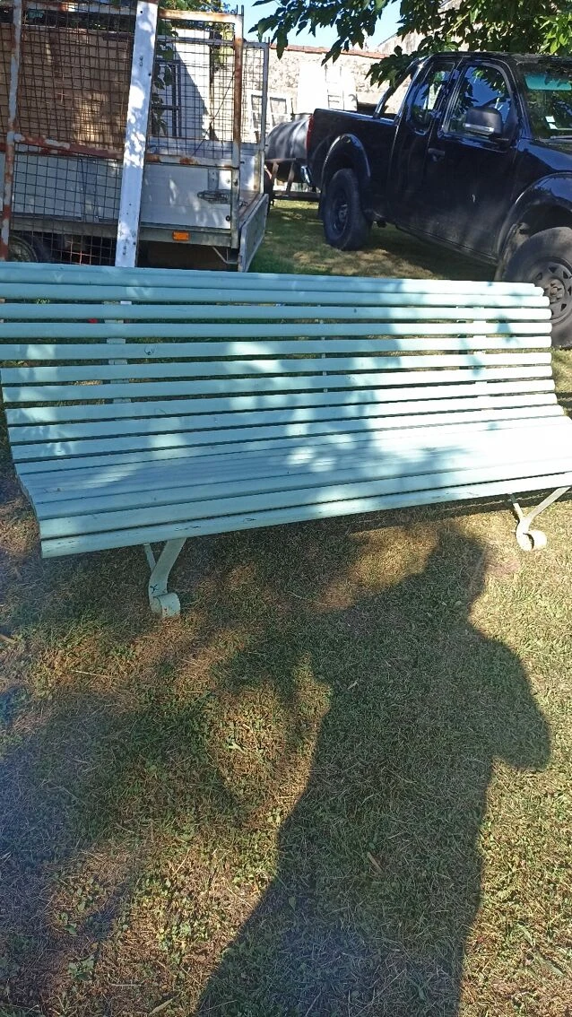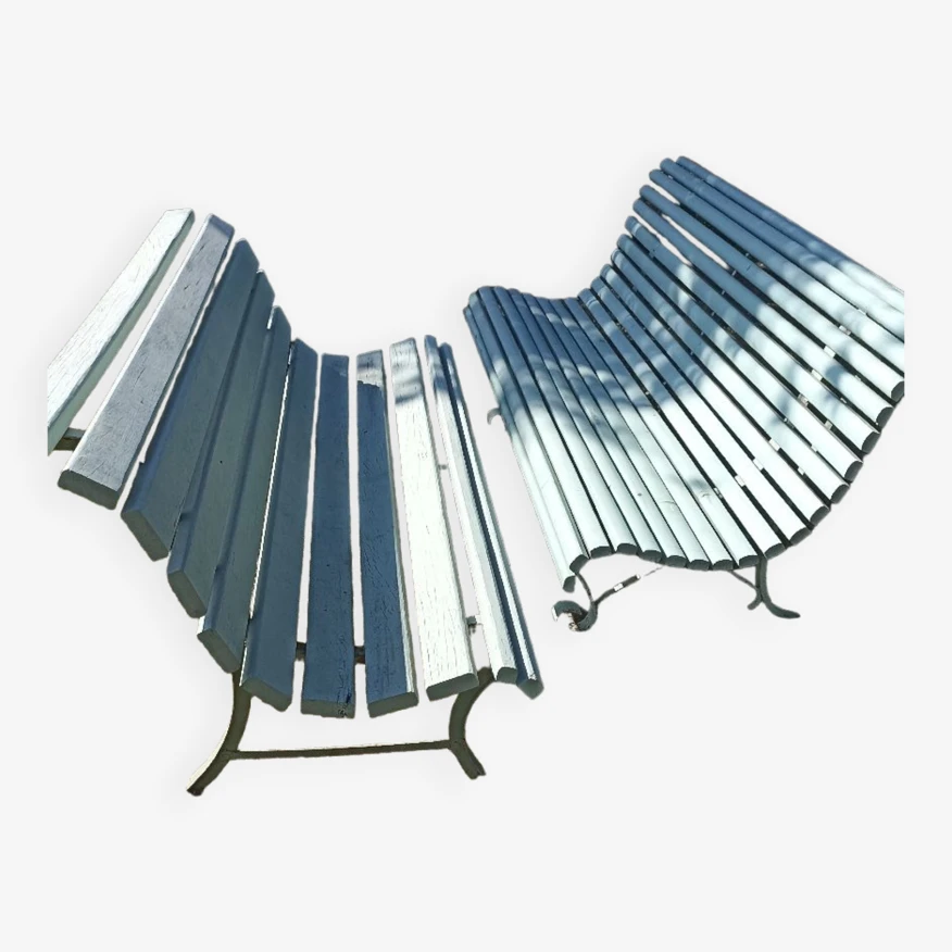 Ancien bancs de jardin, ossature en fer lamelles bois peint.