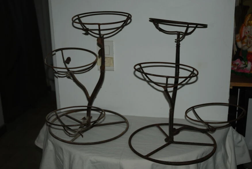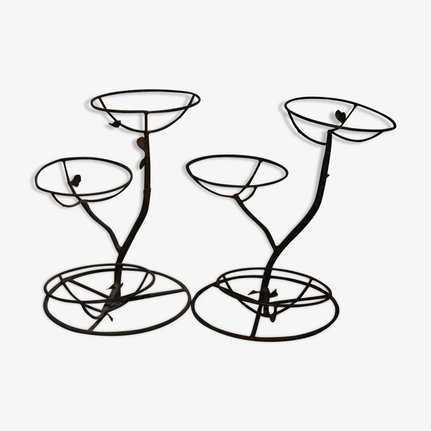 Porte plantes en fer forgé pouvant accueillir 3 plantes ou corbeille en mousse remplie de plantes retombantes.