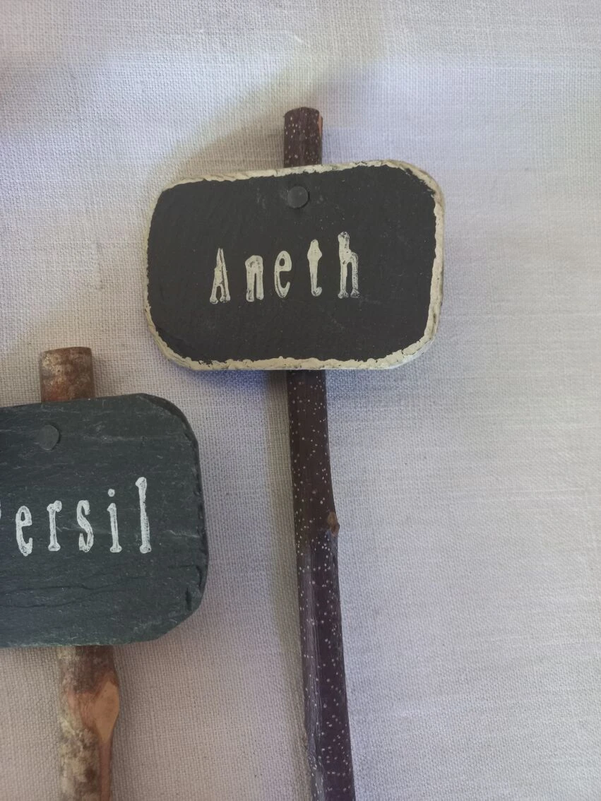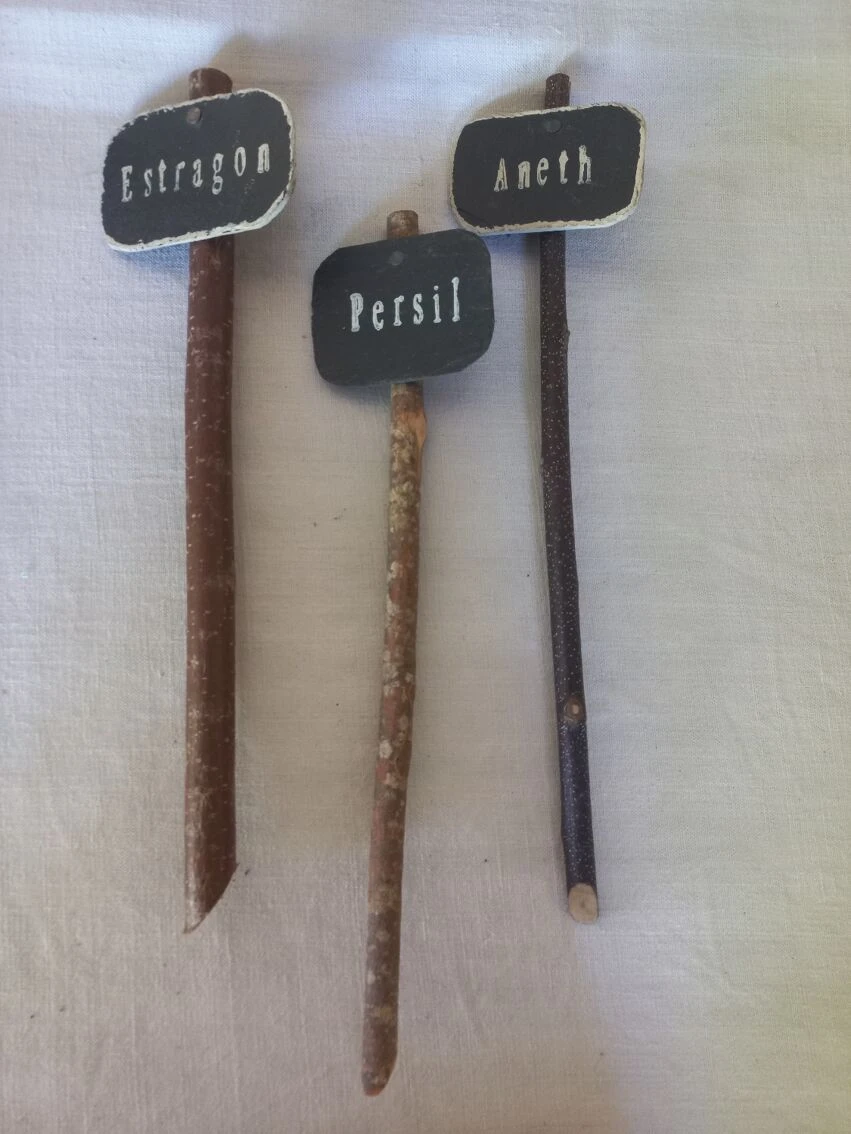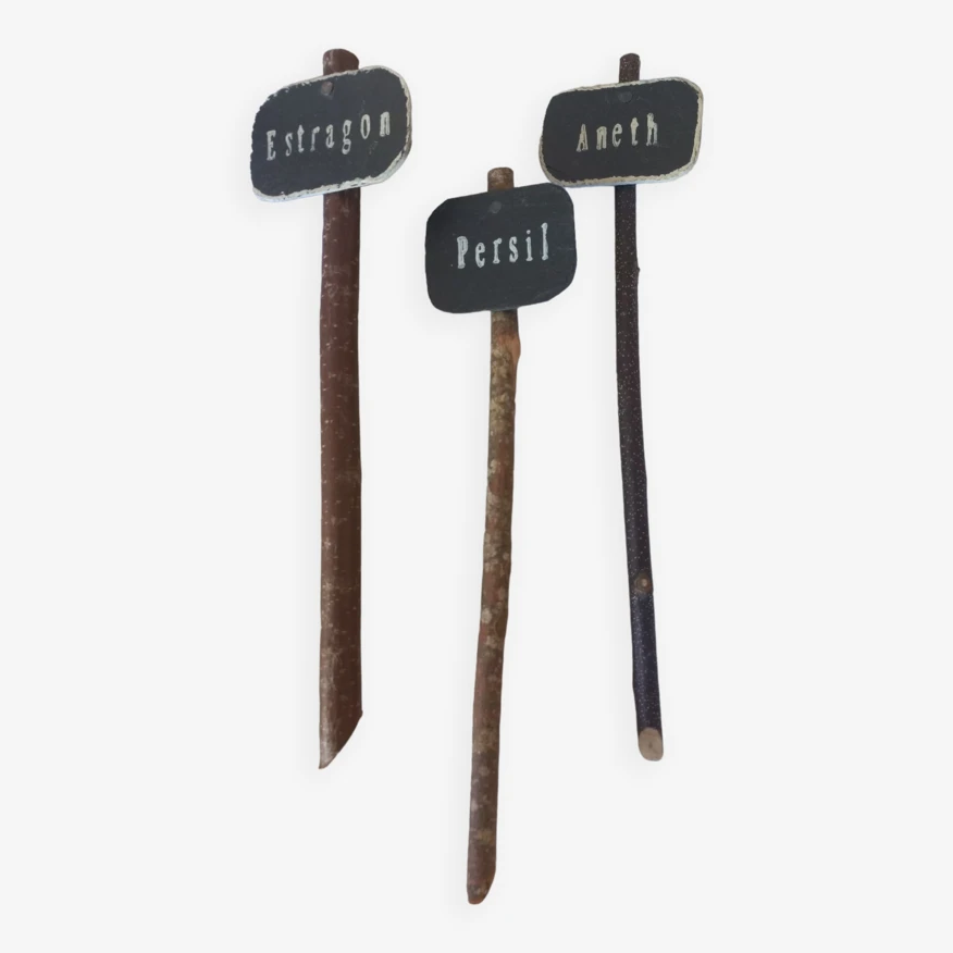 Lot de 3 étiquettes pancartes panneaux de jardin pour identifier les herbes aromatiques du potager.
