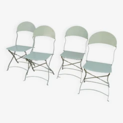 Suite de 4 chaises pliantes en fer peintes en vert provence avec une peinture spéciale fer antirouille.