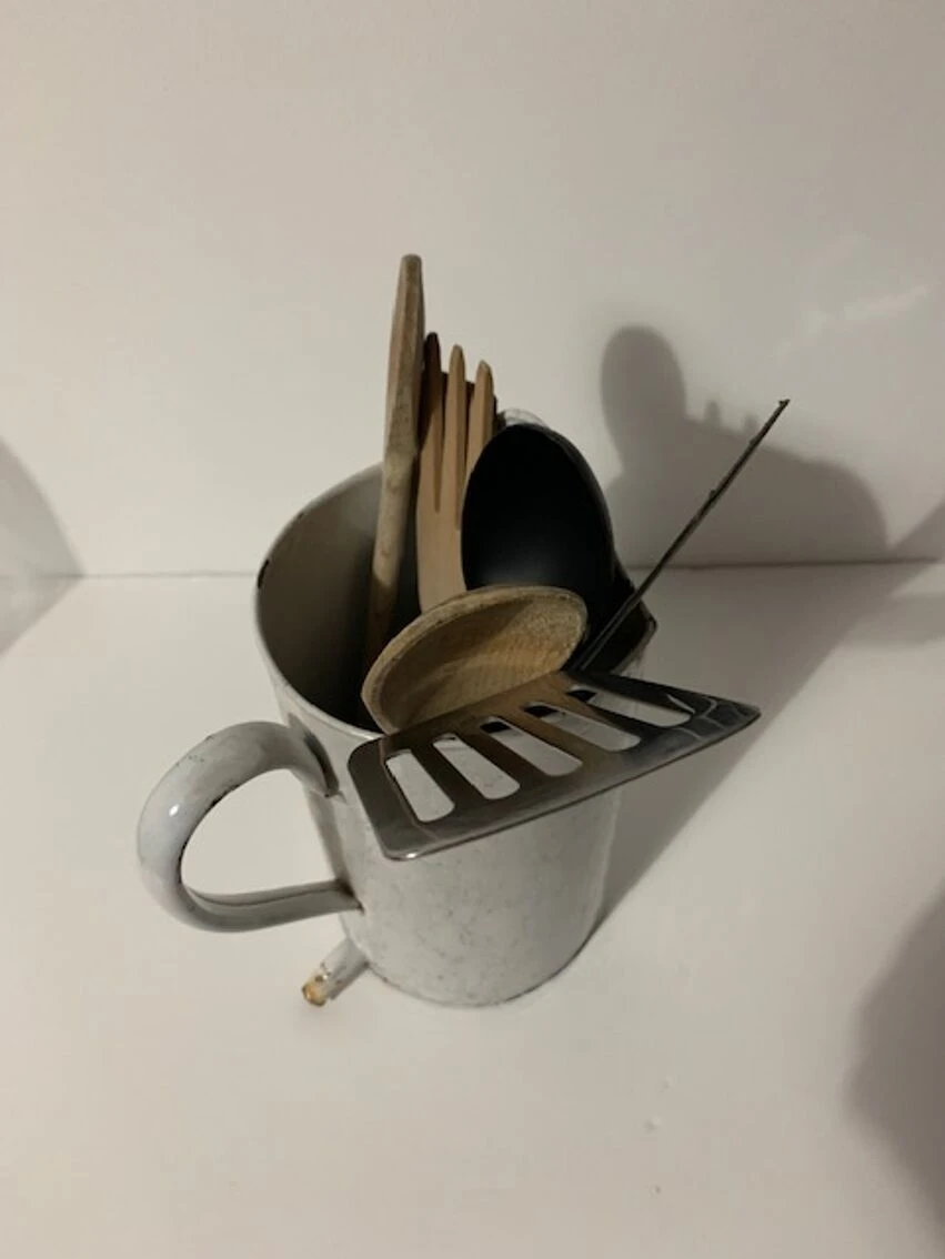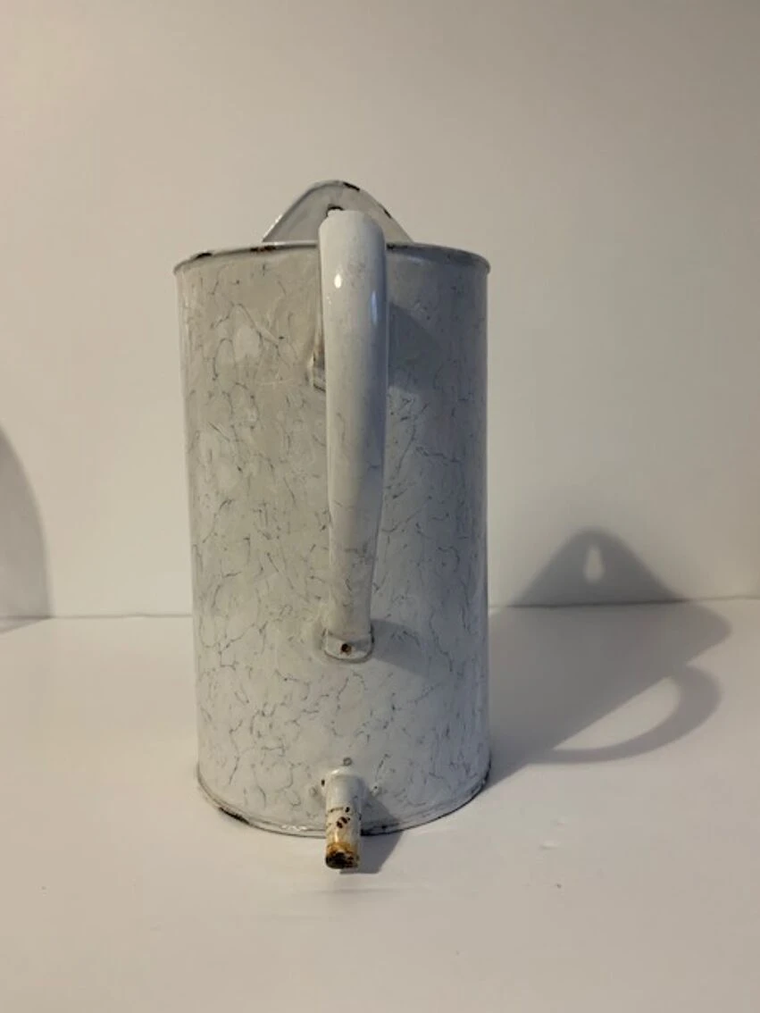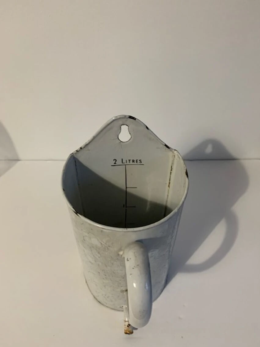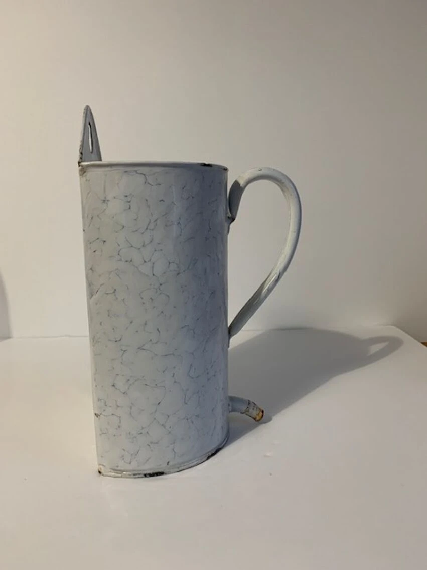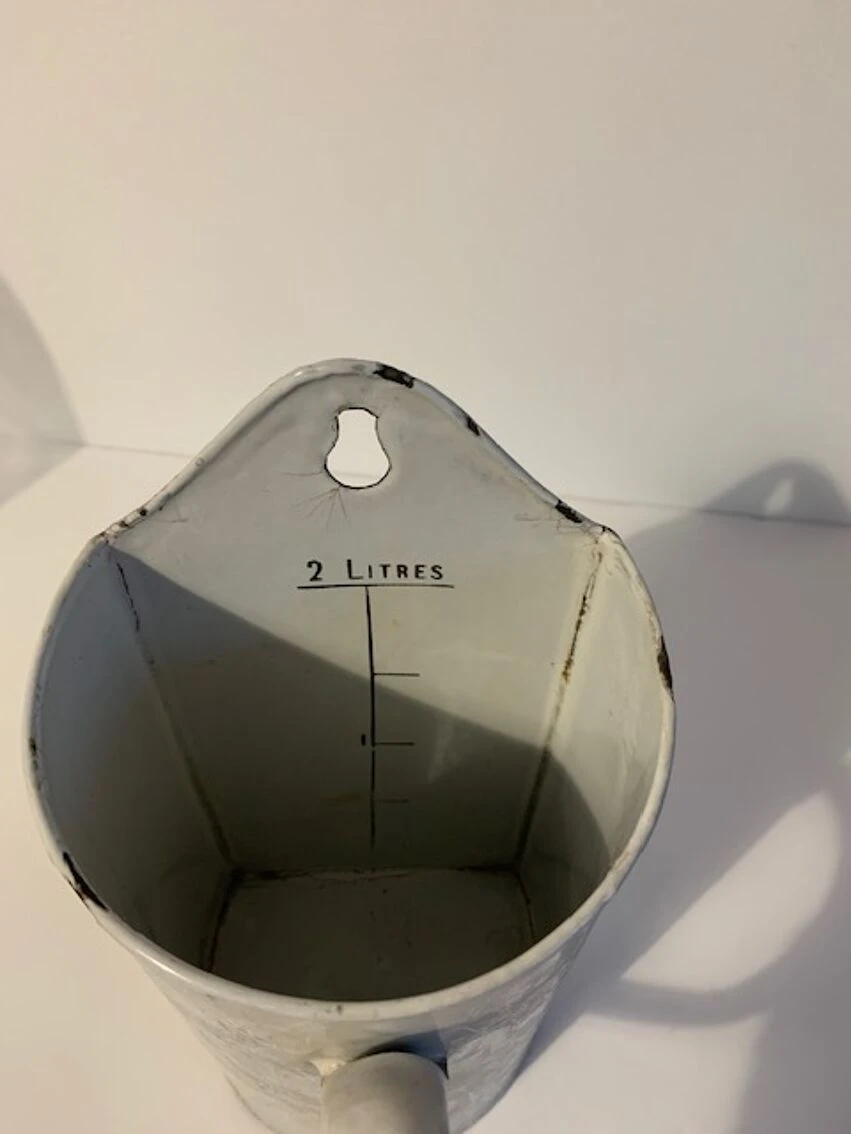 Ancien broc à lavement, certains diraient cruche à lavement qui peut très facilement trouver sa place dans une cuisine pour y mettre les spatules, ou accueillir des fleurs, ou support éponge bref, une seconde vie l’attend.