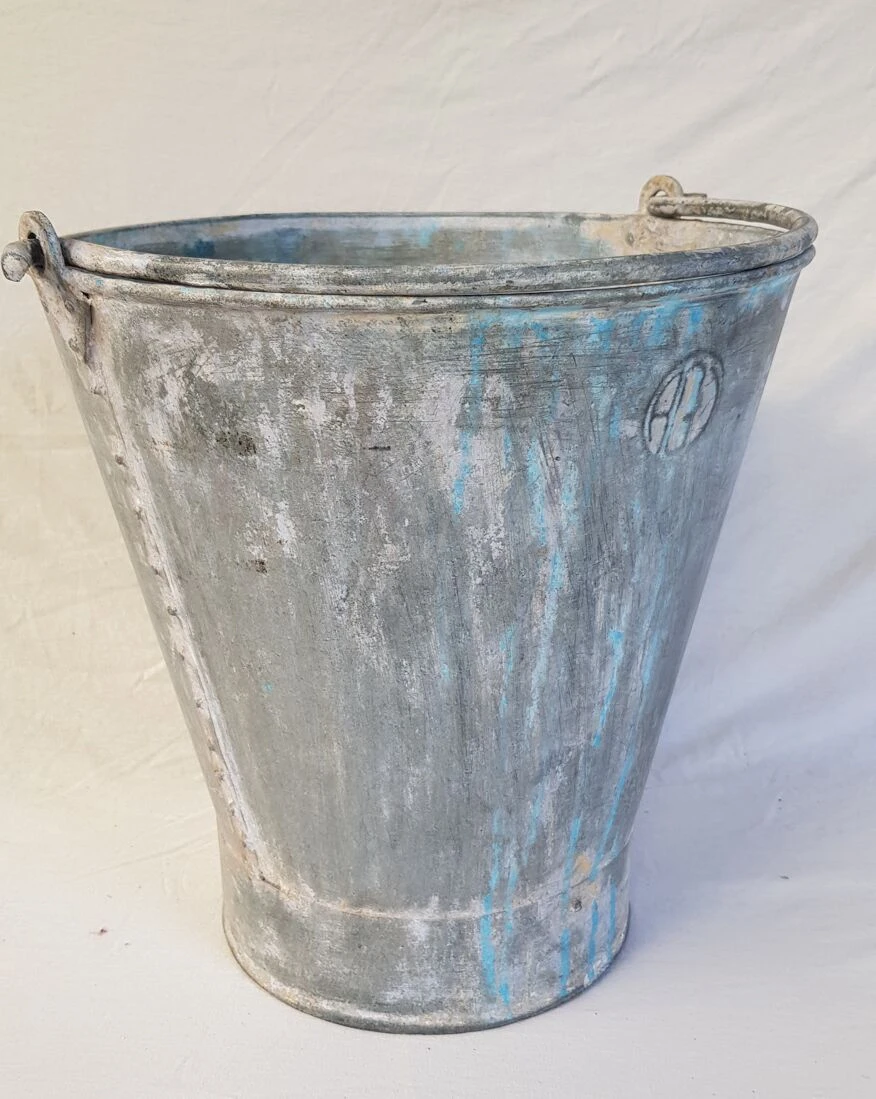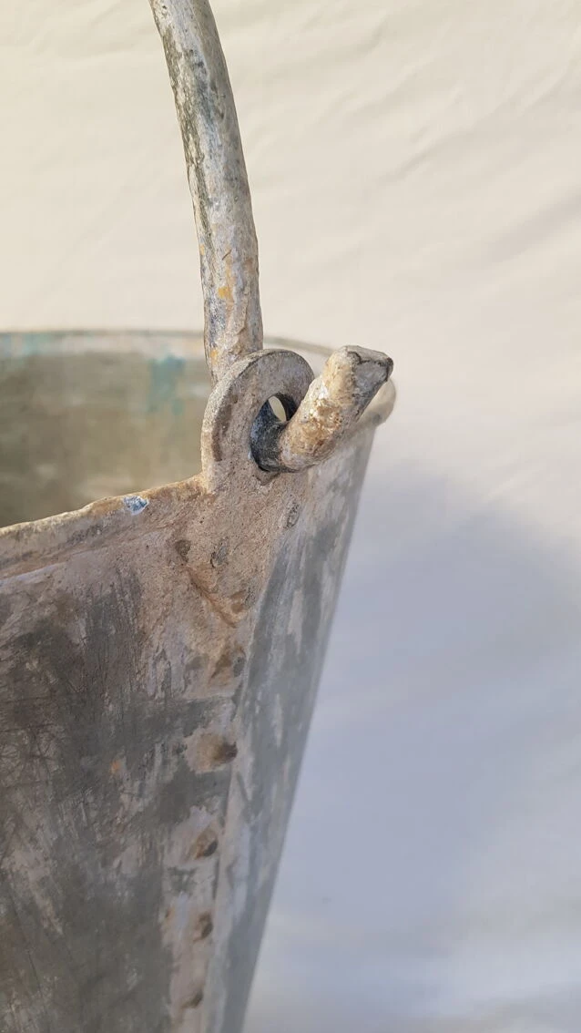 Ancien seau avec anse en zinc épais / belle patine et épaisseur de zinc, étanche et fonctionnel ou en déco cache-pot.