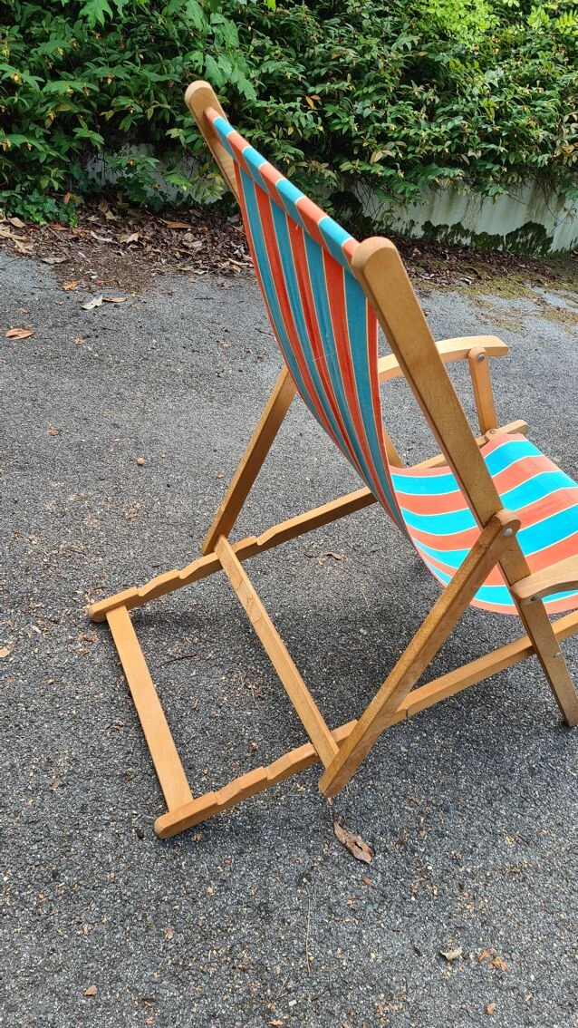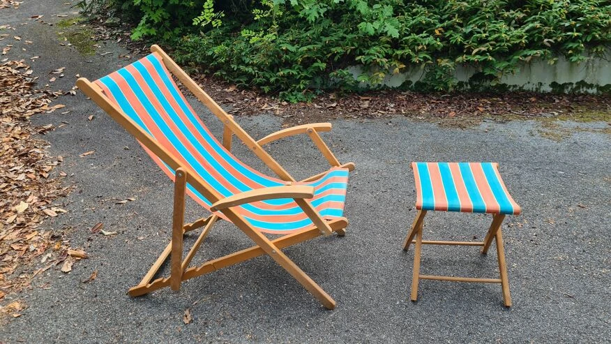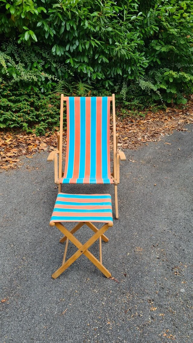 Ancienne Chaise Longue / Transat Avec Son Repose Pied