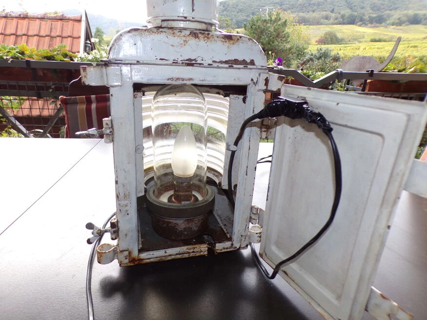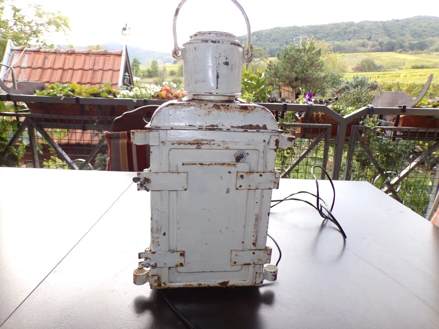 Ancienne jolie lampe de bateau électrifiée en métal ouvrard &villars st ouen 461 début 20 ème.