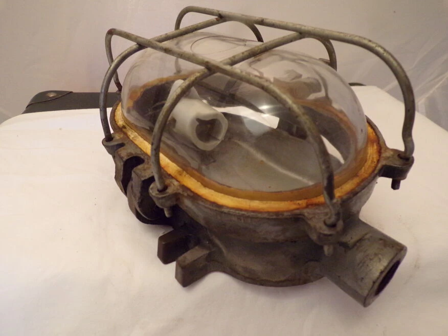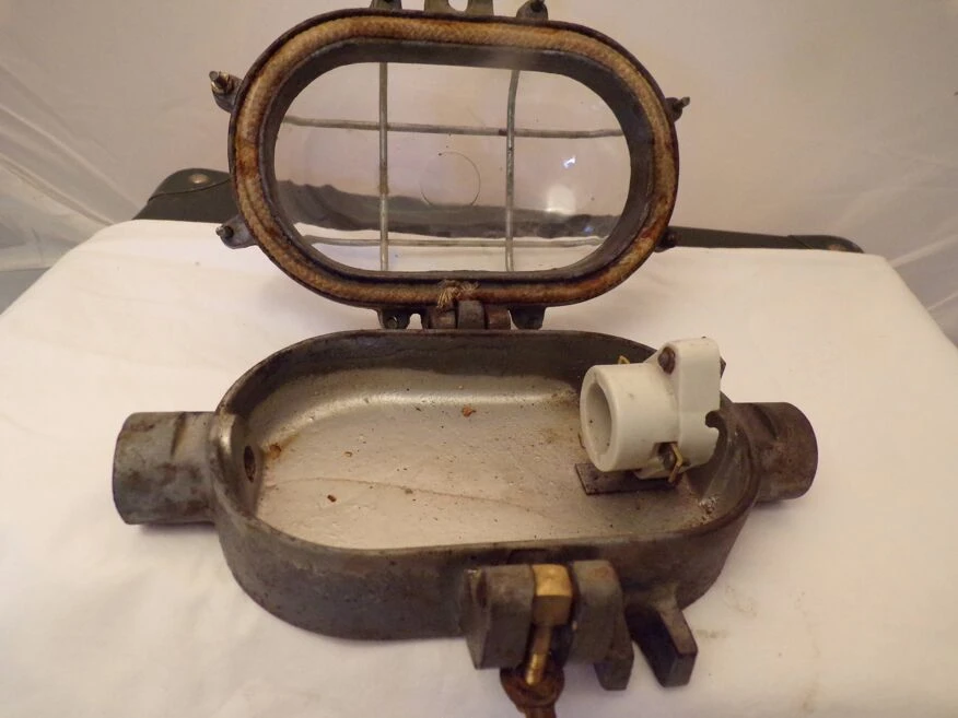 Ancienne applique hublot de la marque Bloc avec corps en fonte Idéal pour une déco industrielle , longueur 23 cm largeur 17 cm , hauteur 12 pour 2,5 kg.