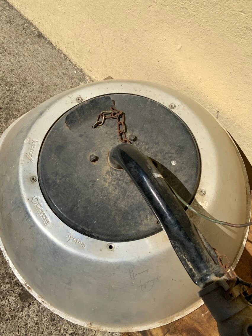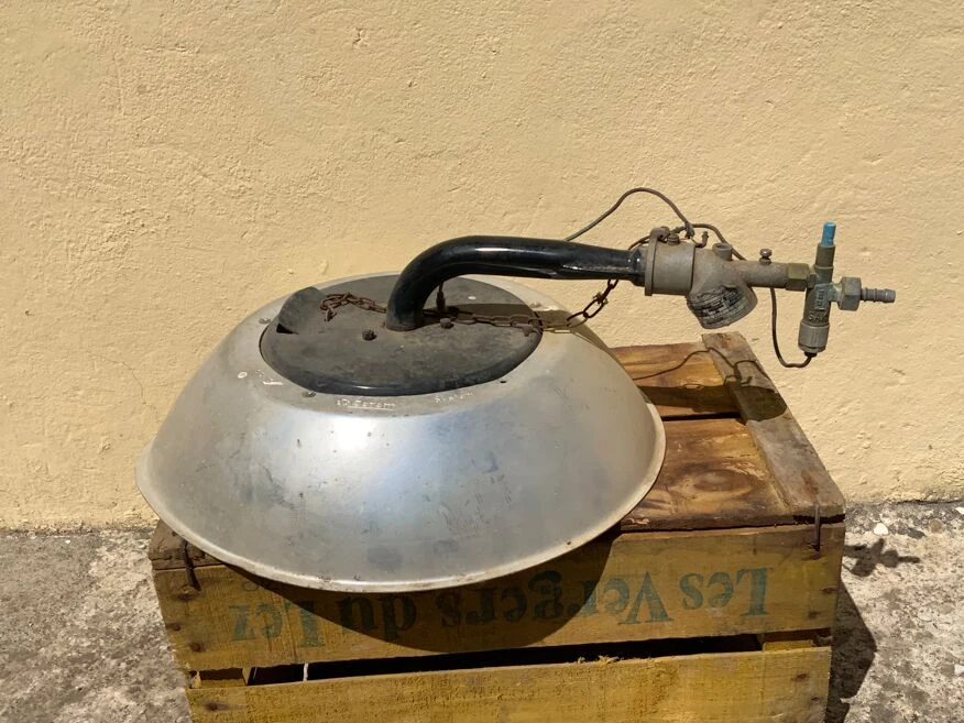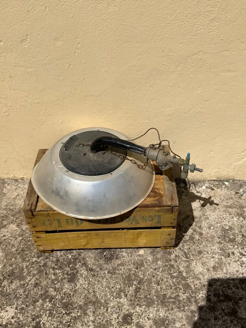 Probablement un ancien chauffage industriel à transformer en lampe.