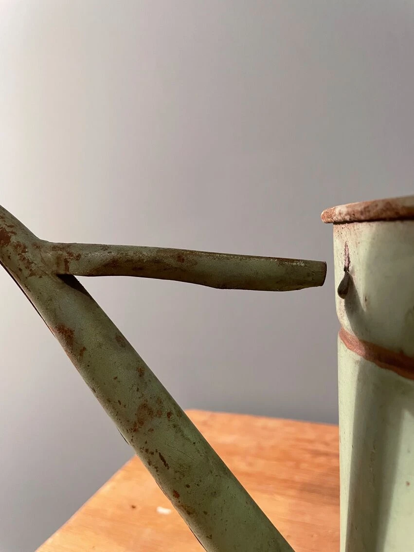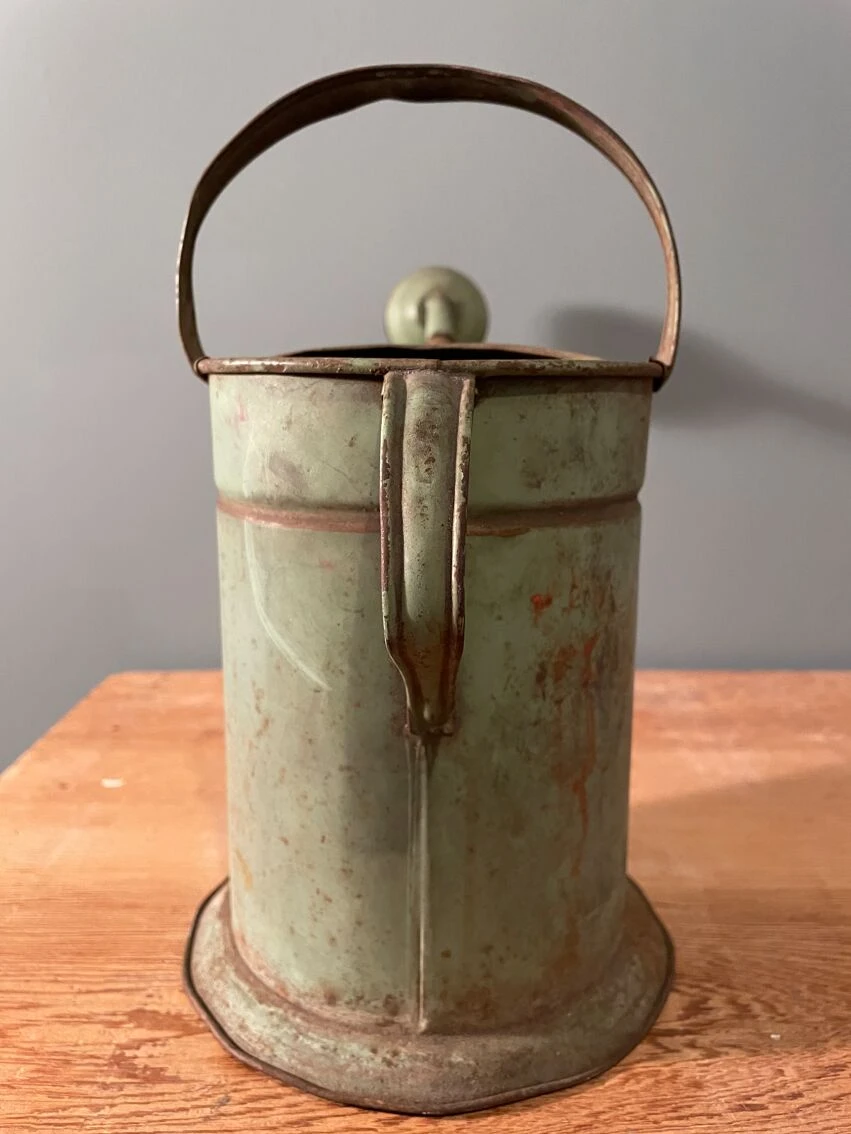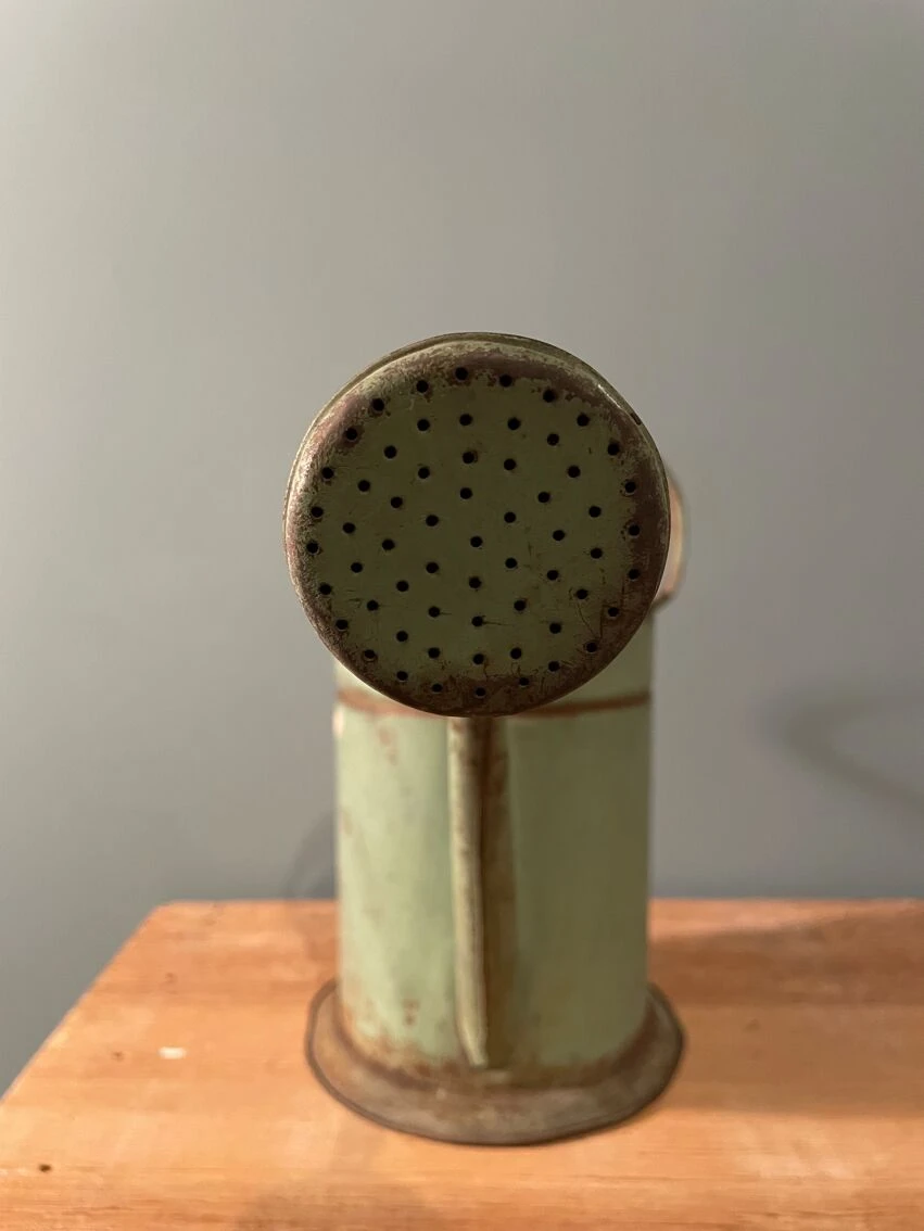Ancien petit arrosoir tout en tôle peinte en vert.
