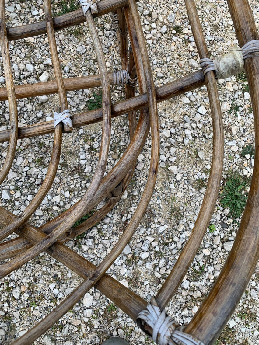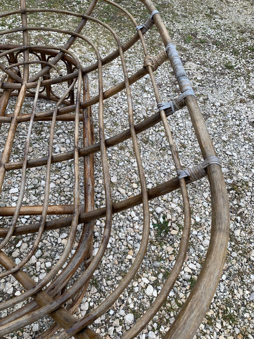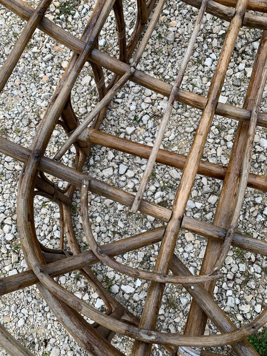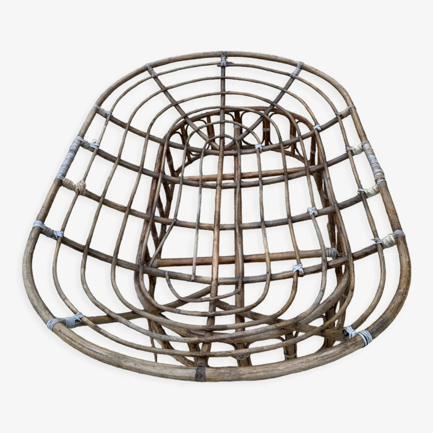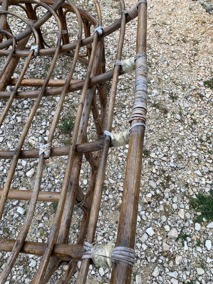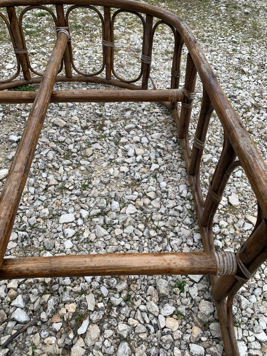 Grande assise style canapé en rotin en l’état et à restaurer qui se compose de deux pièces.