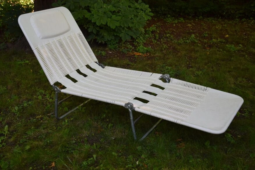 Lit de camp bain de soleil transat vintage années 70 pop art – design.