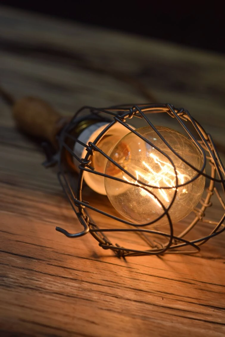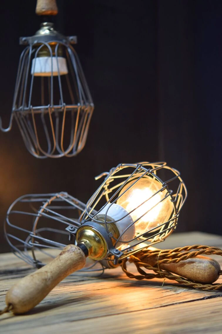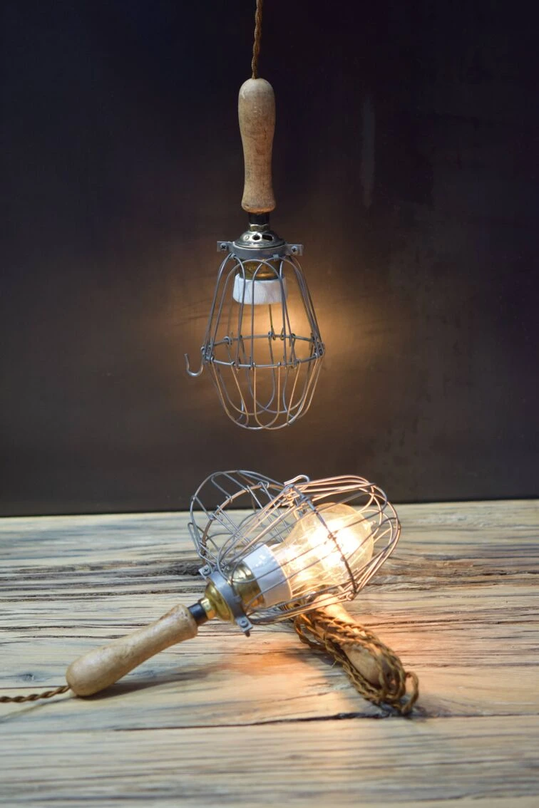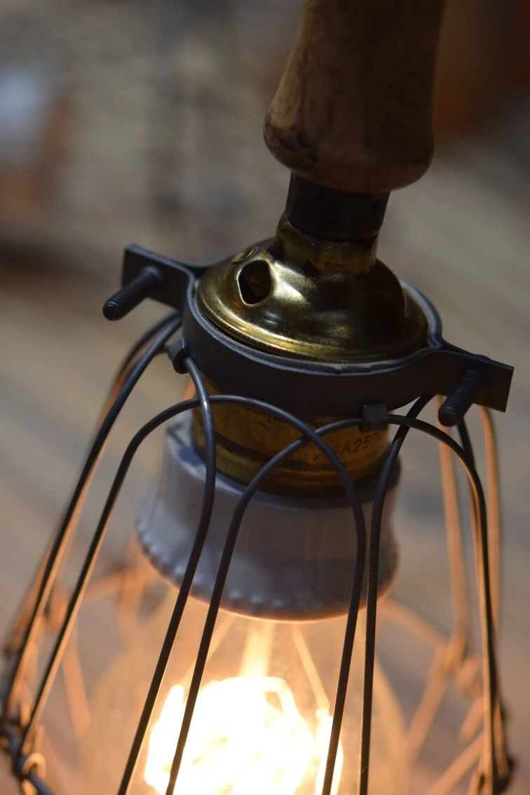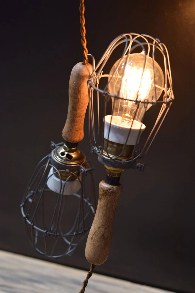 Baladeuse industrielle réalisée à partir d’éléments anciens, branchement sur douille e27.