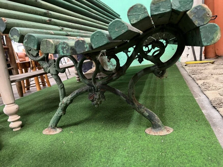Banc de jardin 1900 art nouveau piétement fonte a décor de lierre dans son jus mais en bon état.