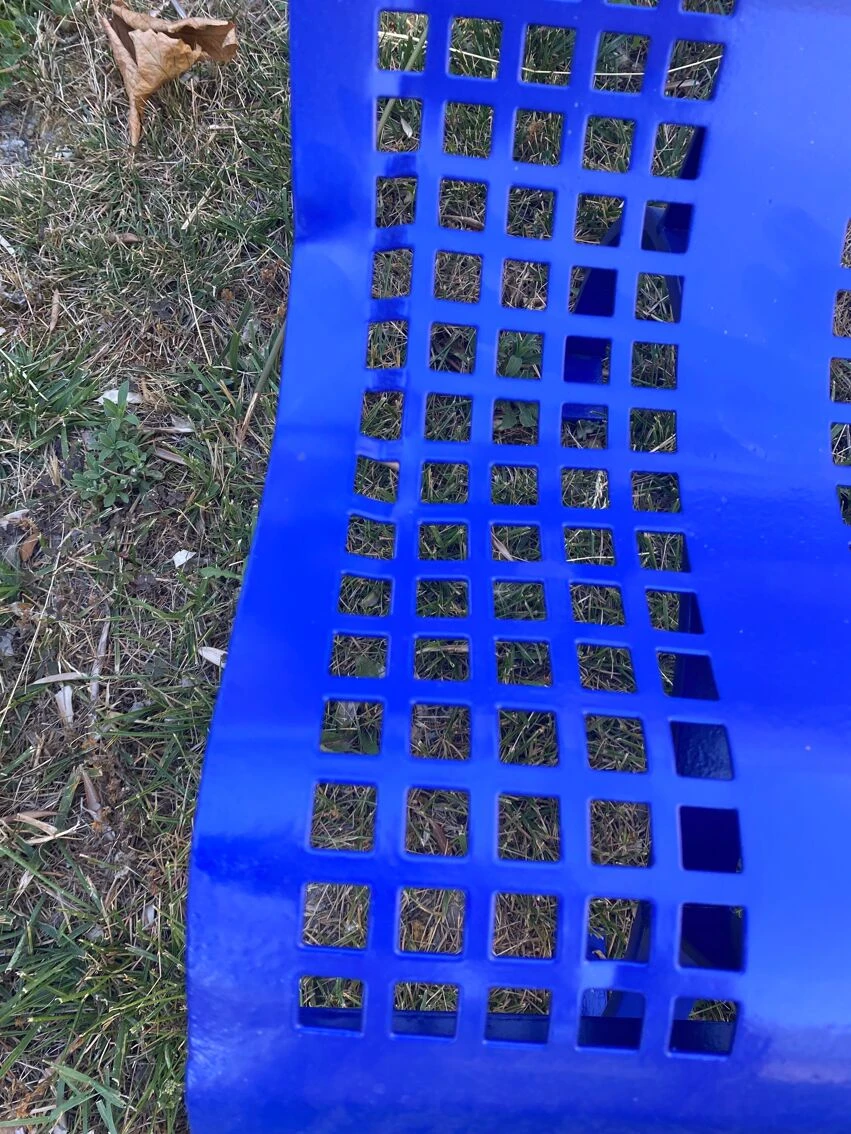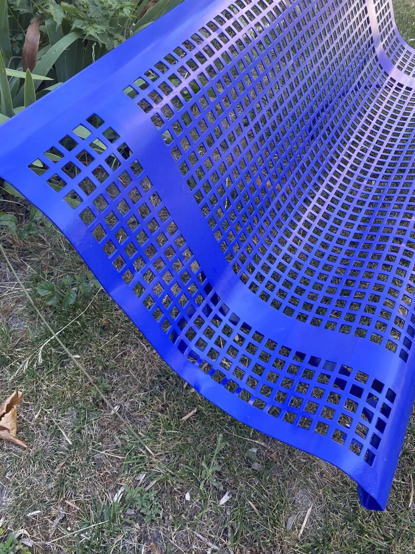 Ce banc dans l’esprit de rené malaval était destiné aux cours de récréation des écoles maternelles dans les années 70.