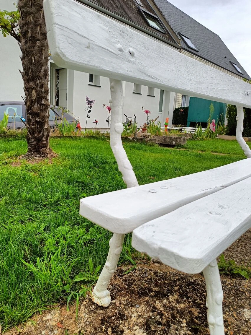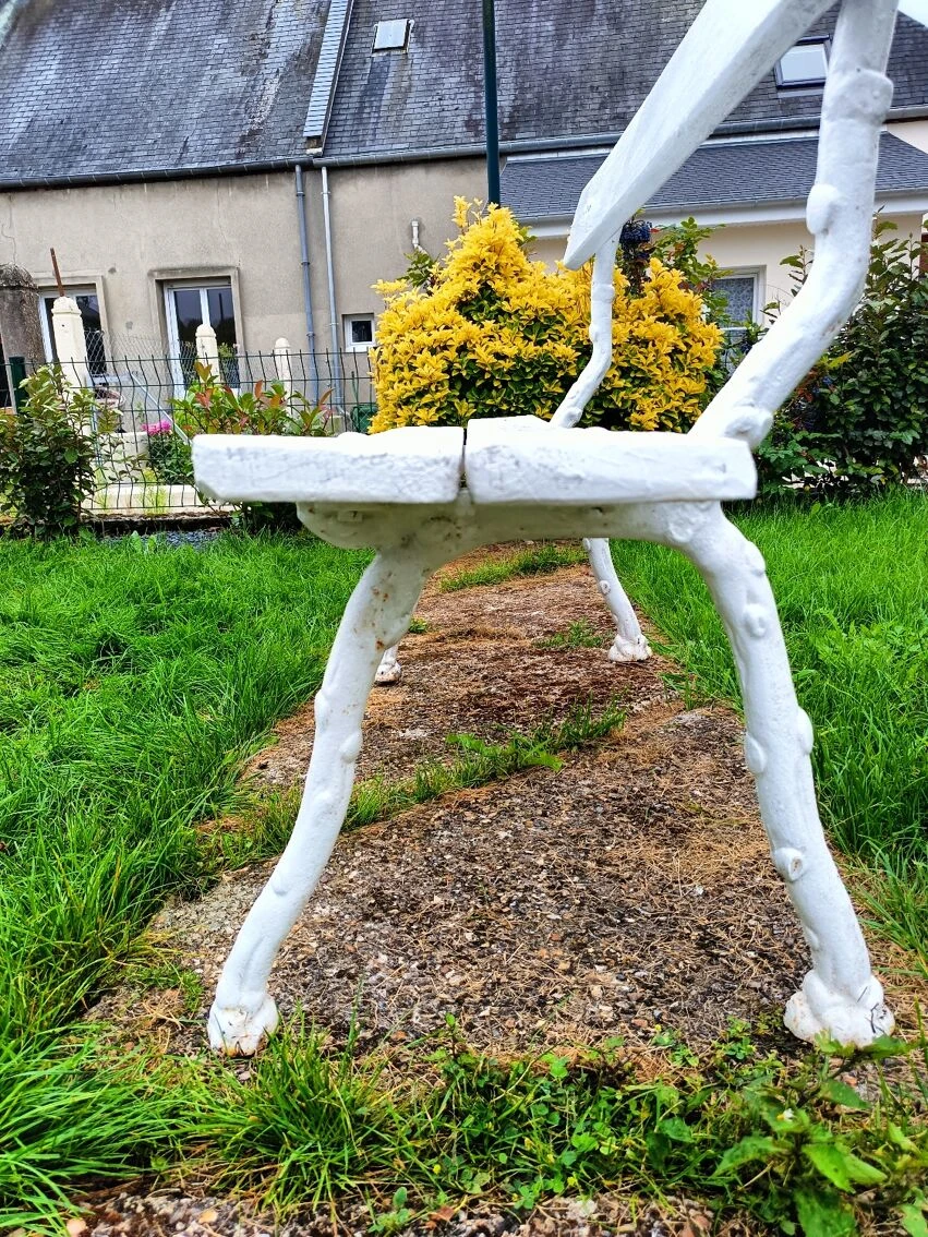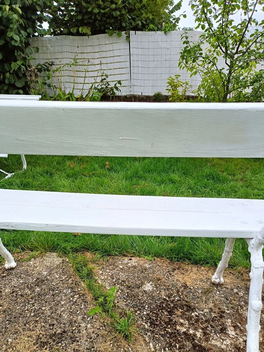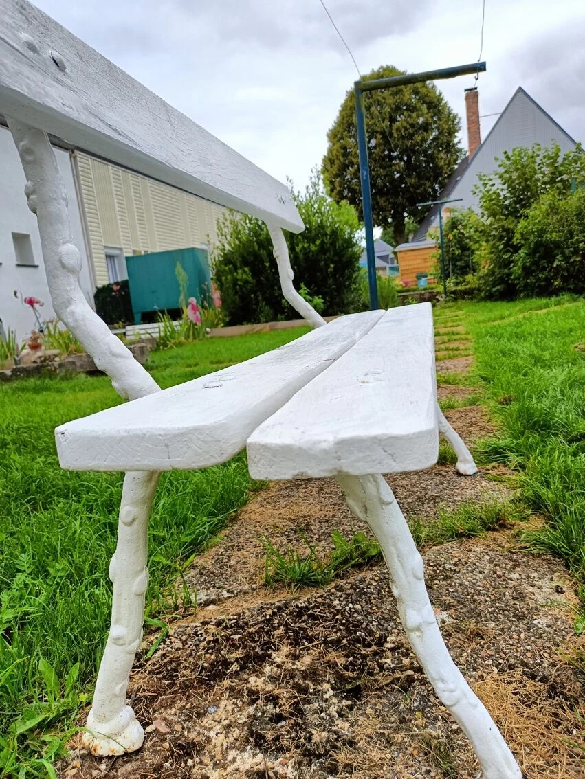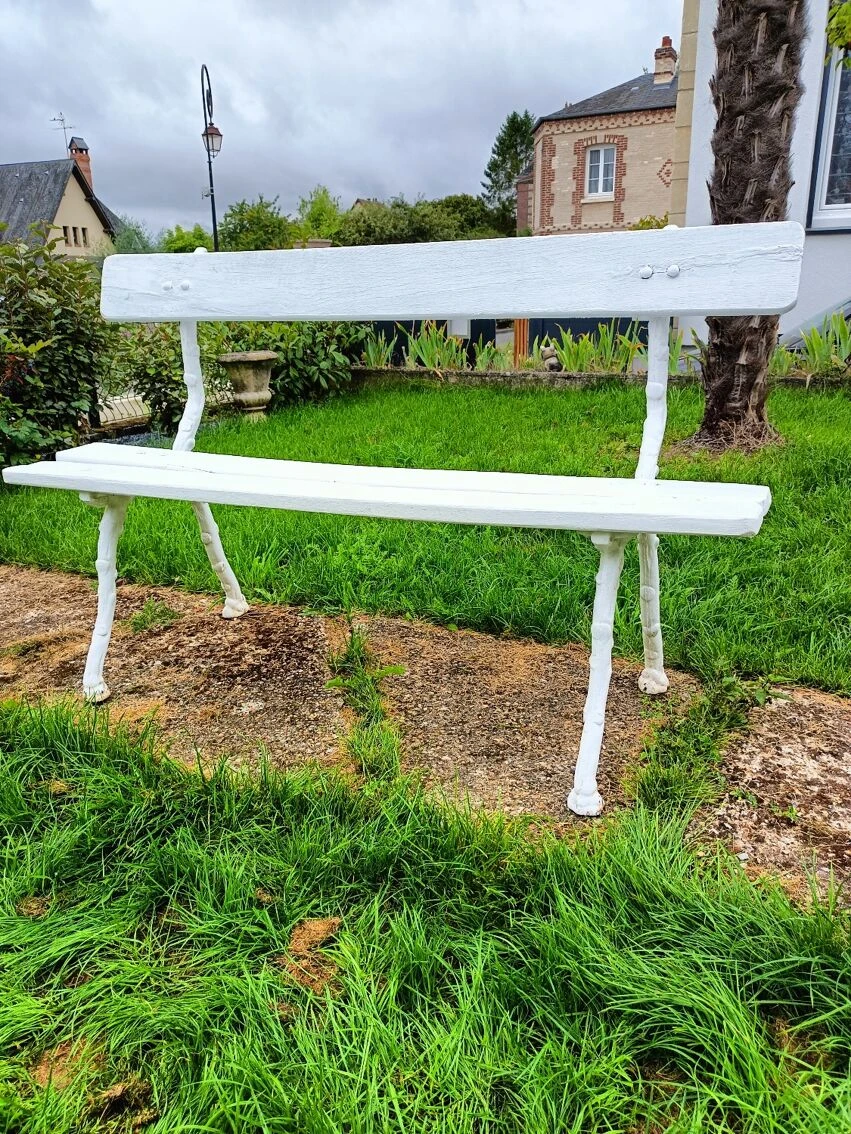 Mise en vente de ce banc de jardin avec pieds en fonte.