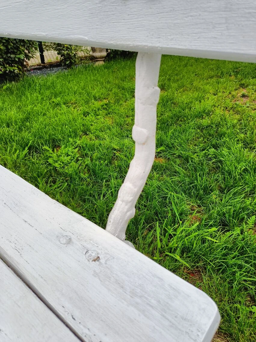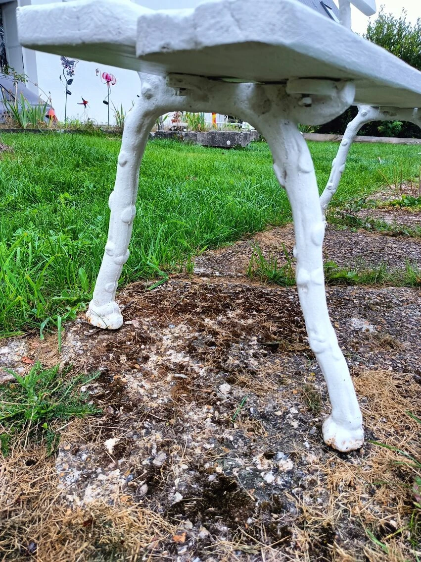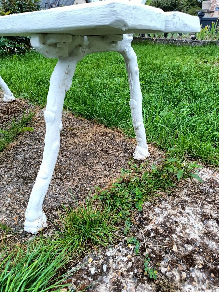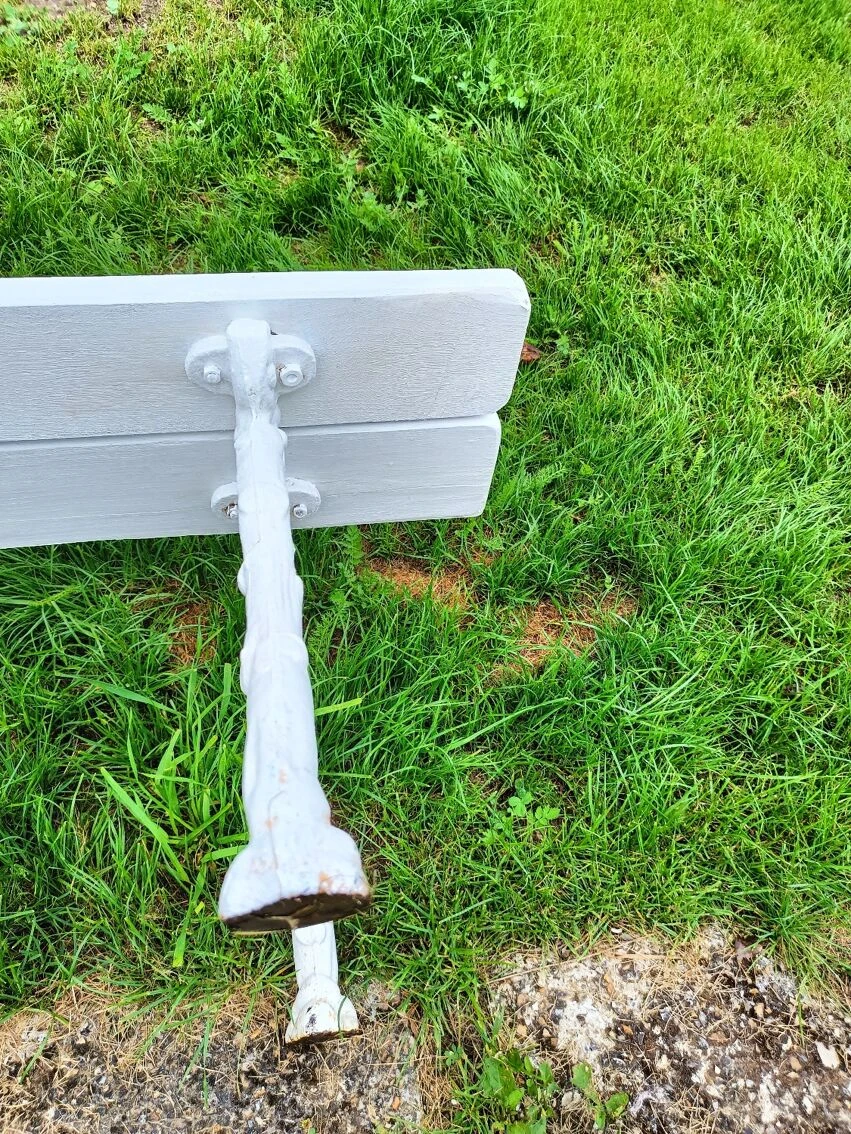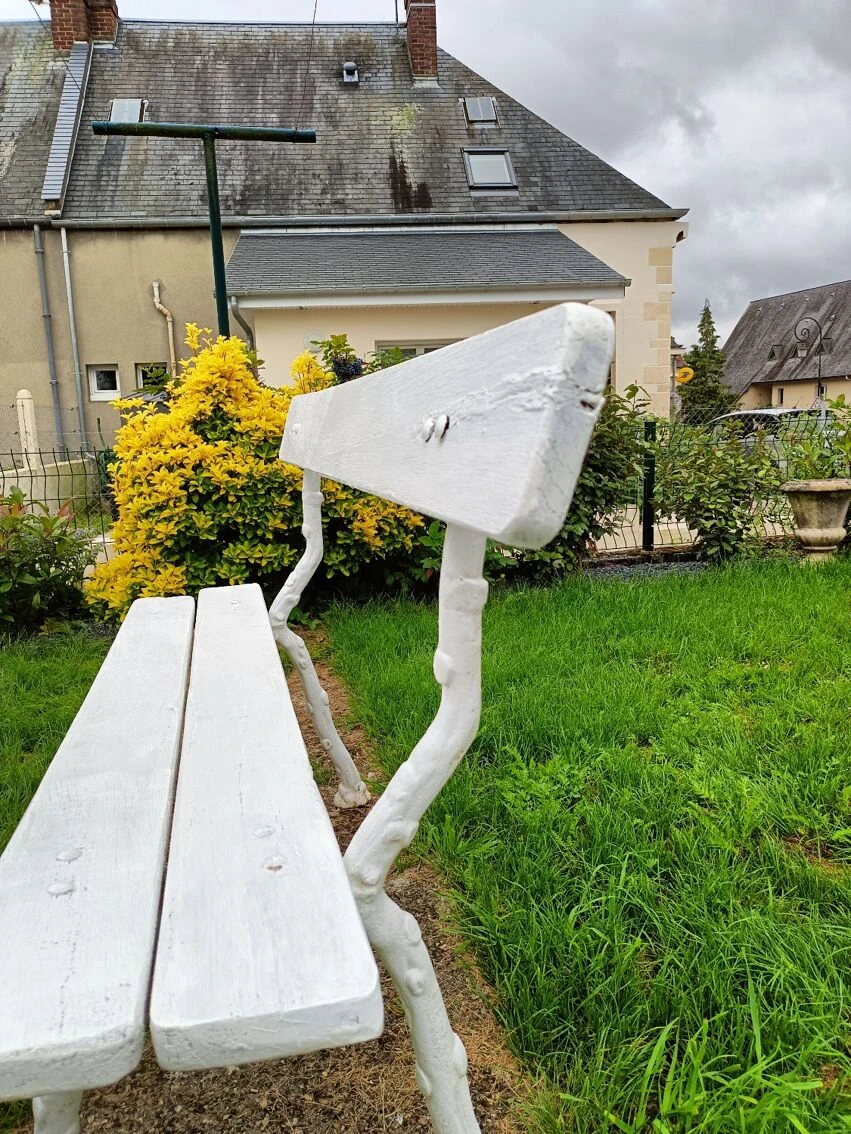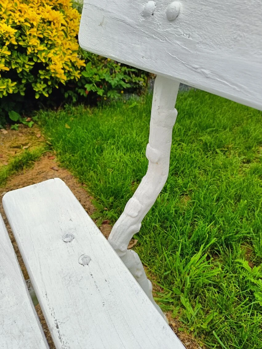 Mise en vente de ce banc de jardin avec pieds en fonte.