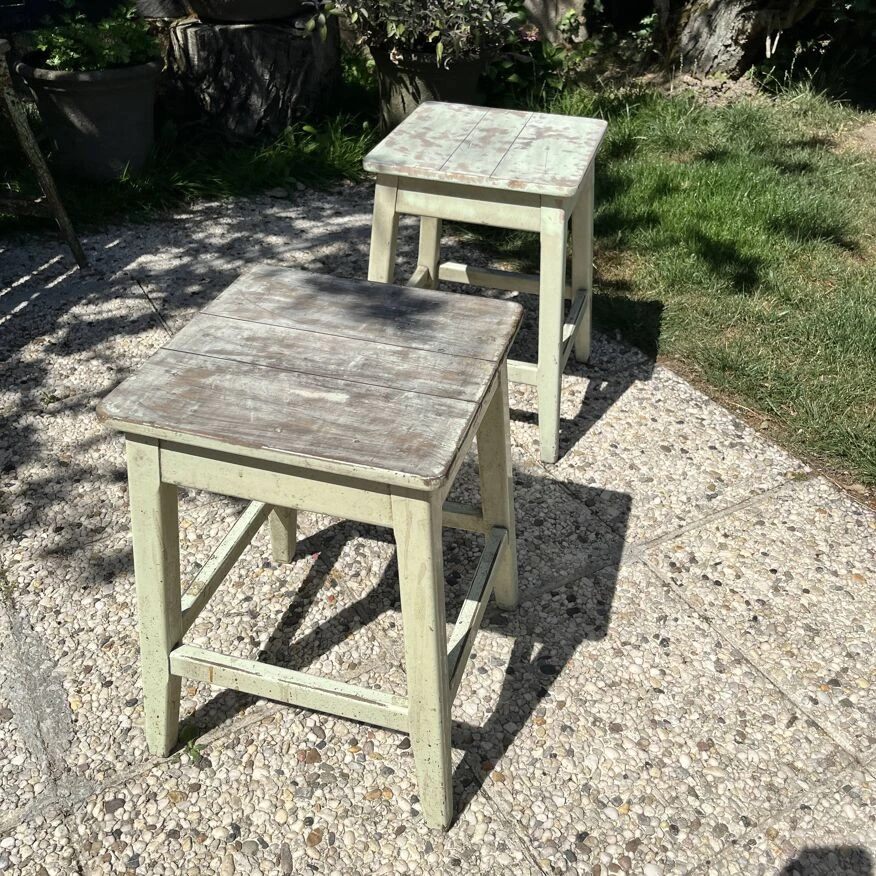Tabourets: 32 X 32 X h 46 cm.