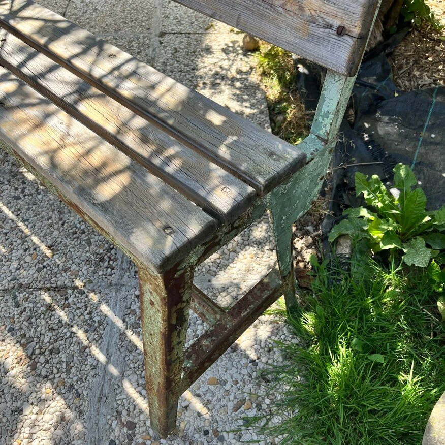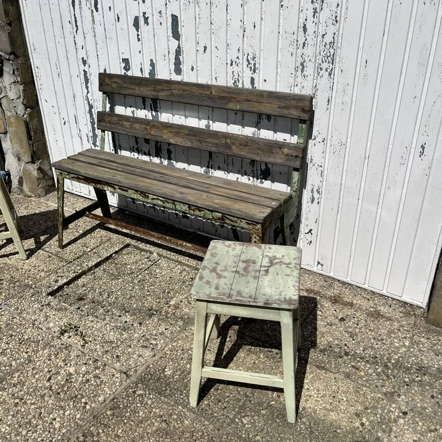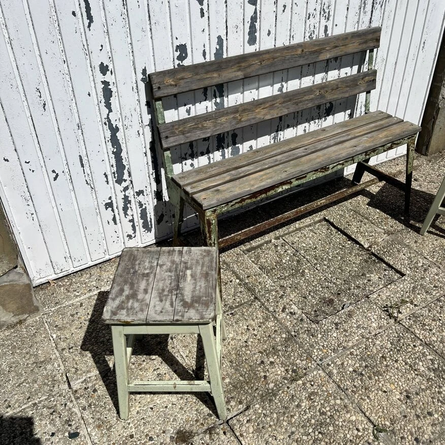 Magnifique lot se composant d’un banc en fer riveter et son assisse et dossier en bois.