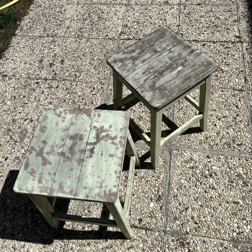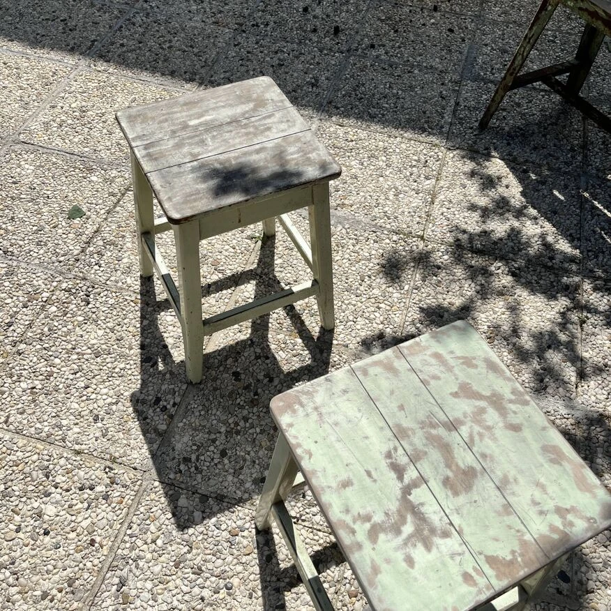 De plus deux tabourets en bois concordant au niveau du vert pistache…
