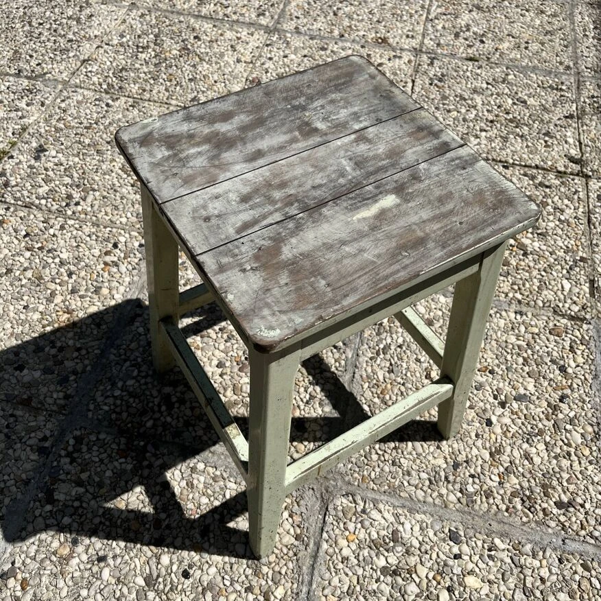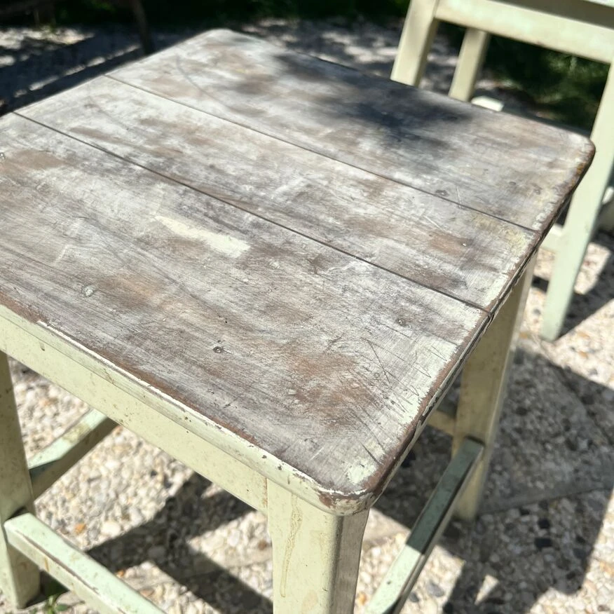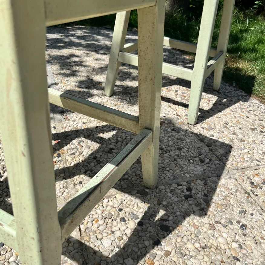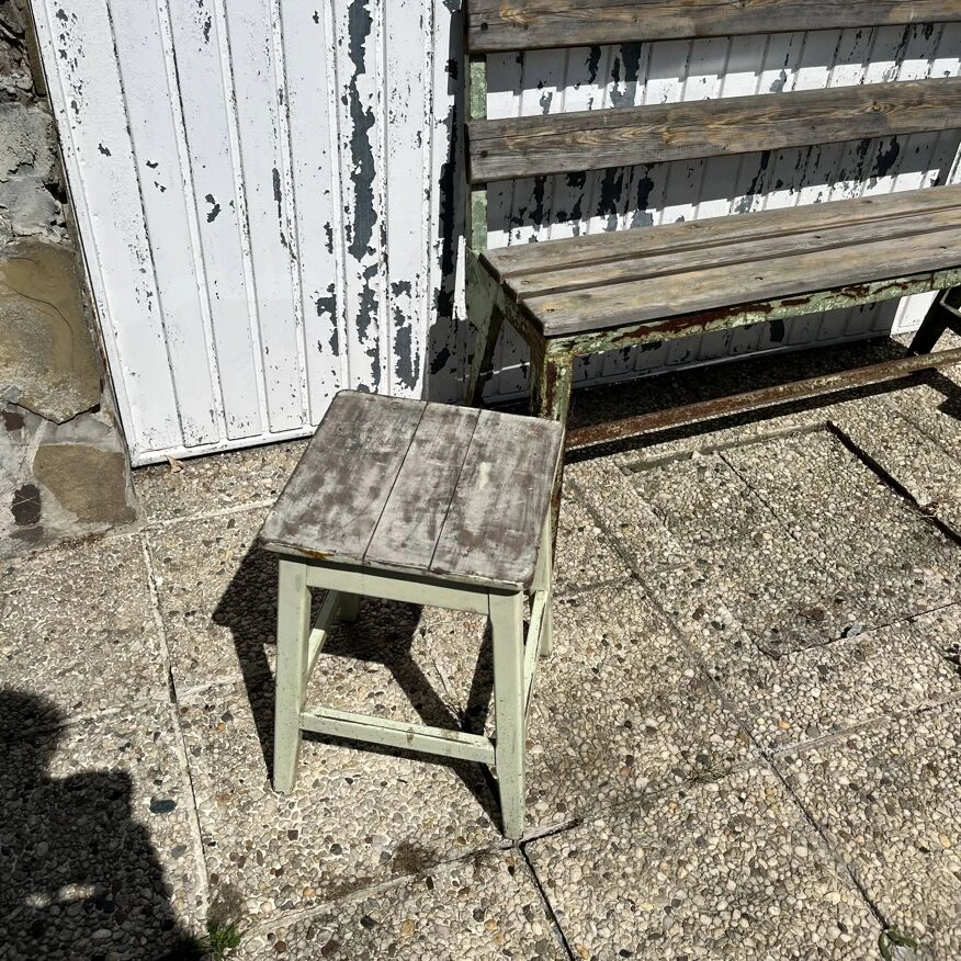 Métal rouillé et peinture verte pistache patinée par le temps…