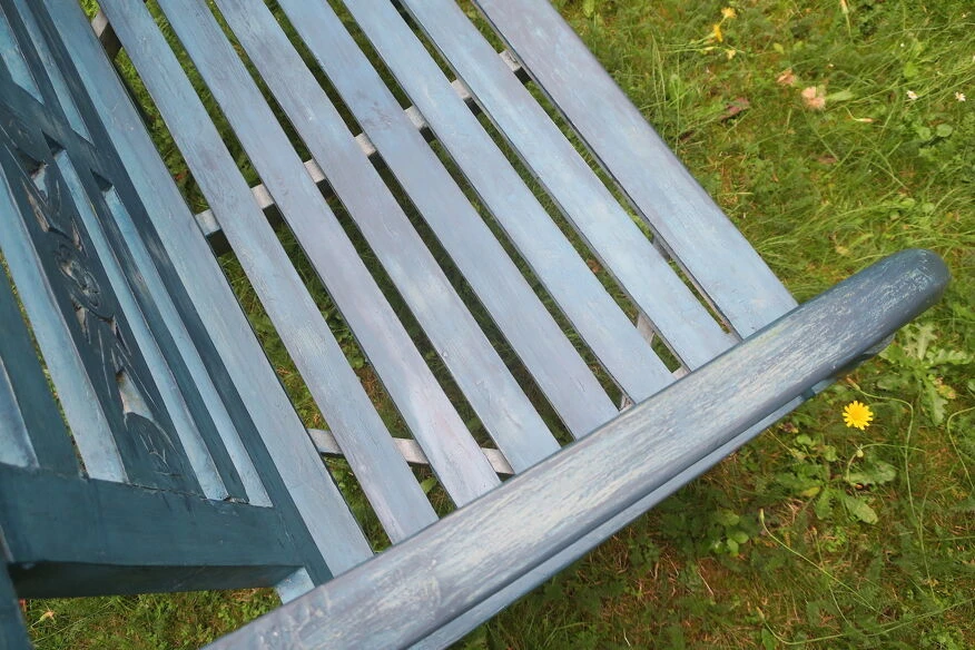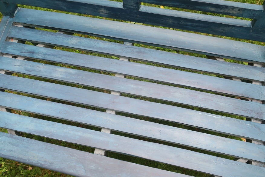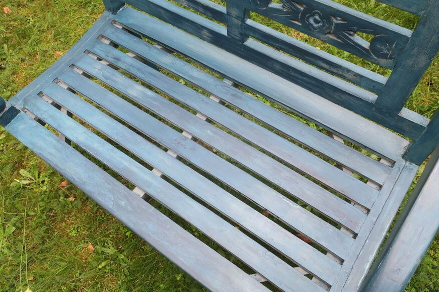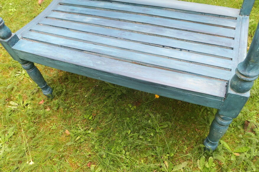 Banc de jardin peint du milieu du siècle en détresse plein de caractère, bien patiné.