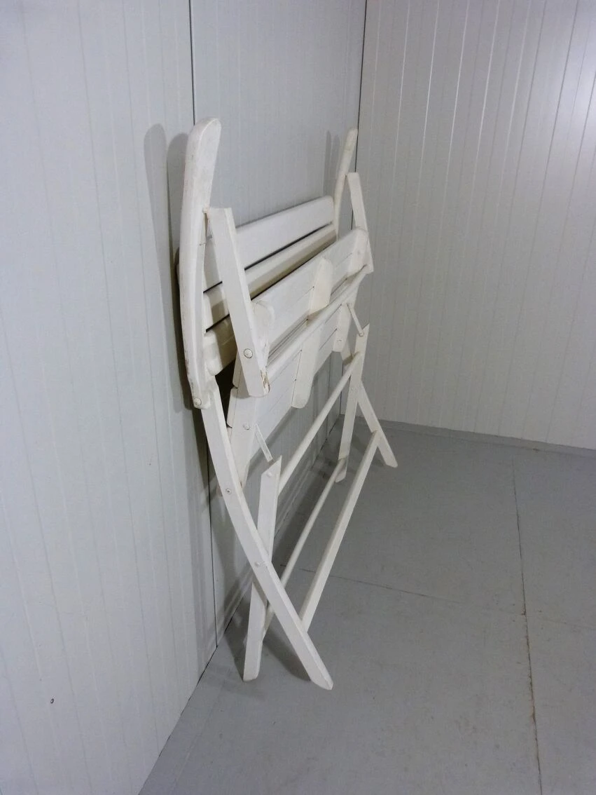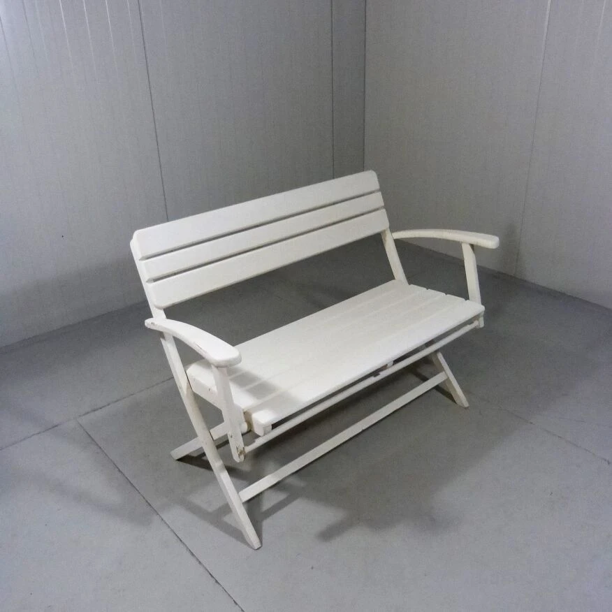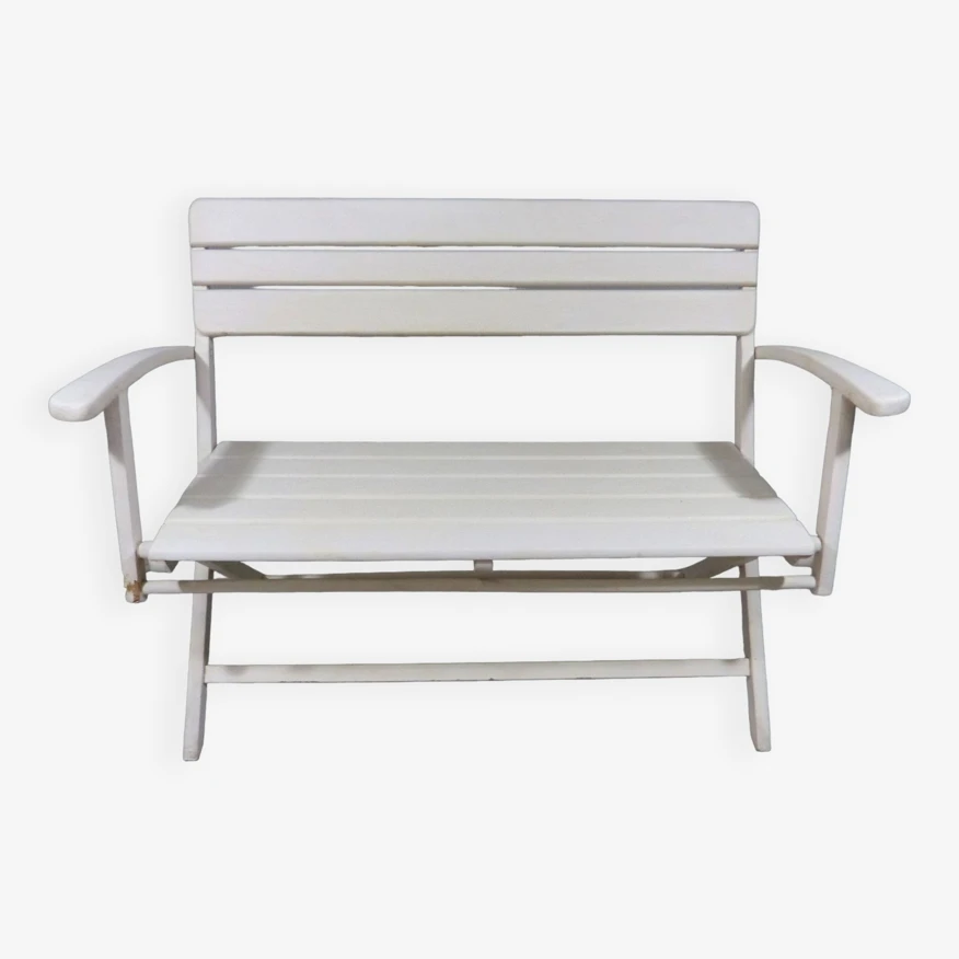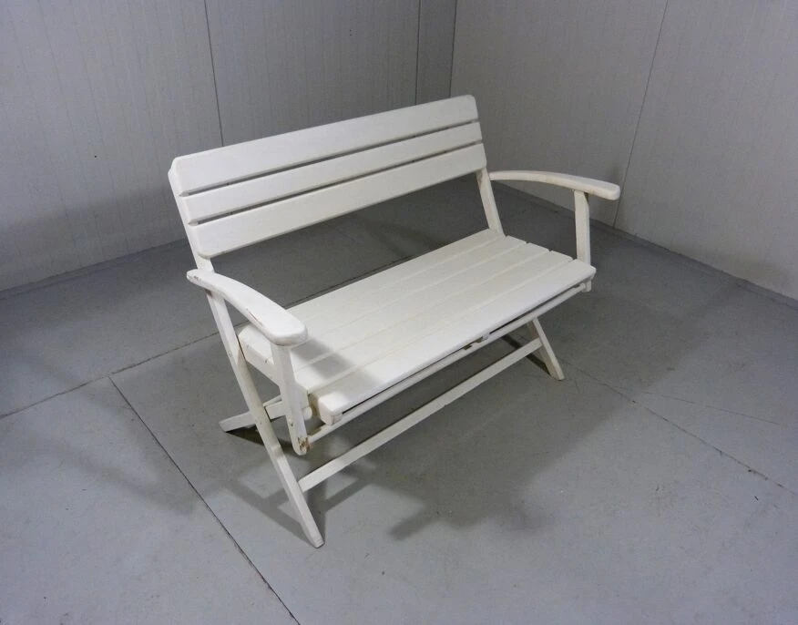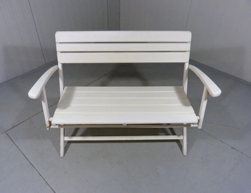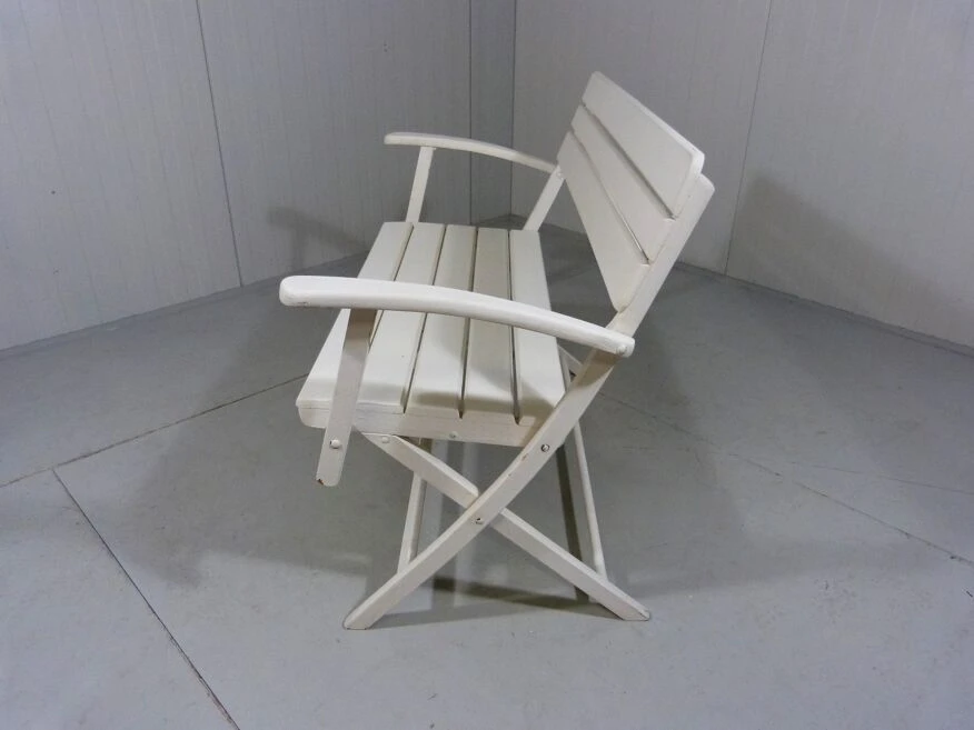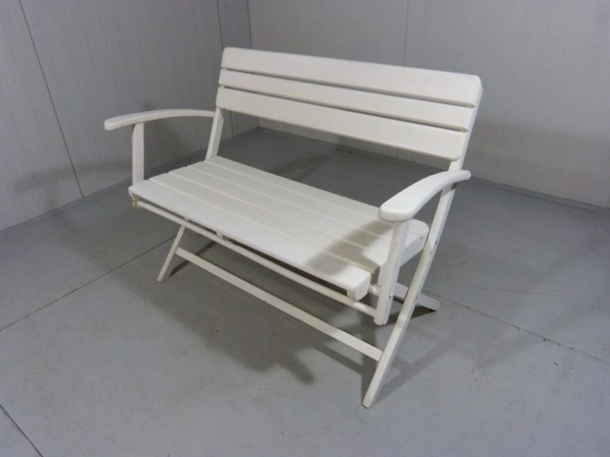 Beau banc de jardin 2 places en bois blanc avec accoudoirs, allemagne.