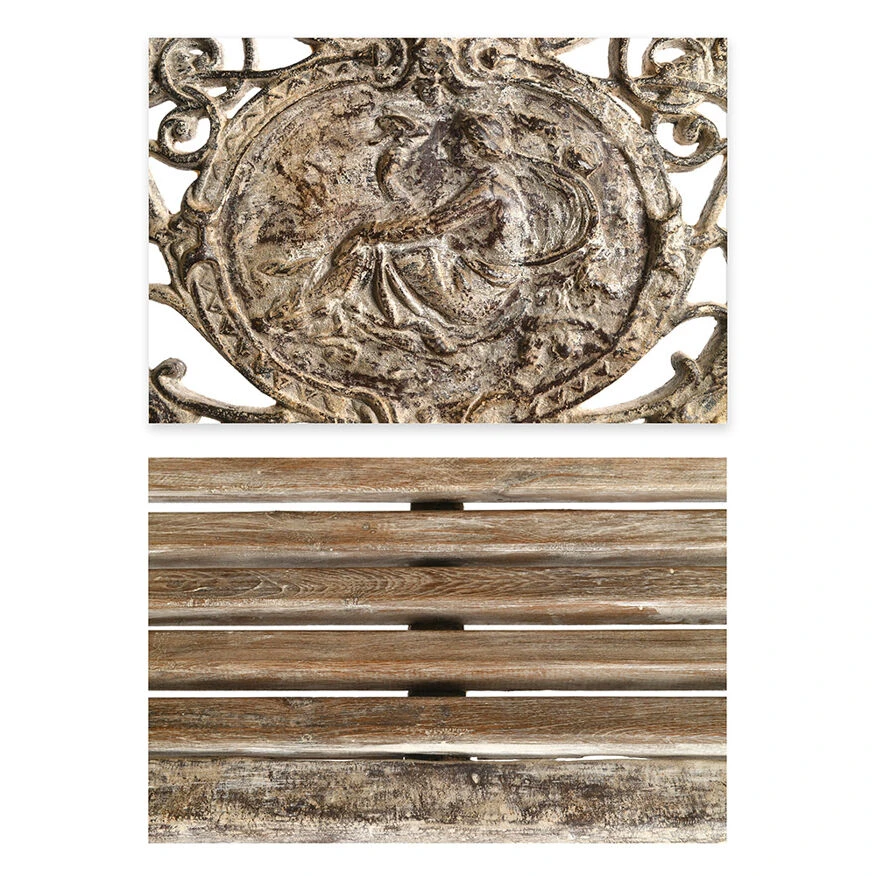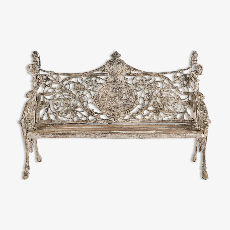 Banc de jardin vintage en fonte et bois.