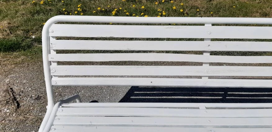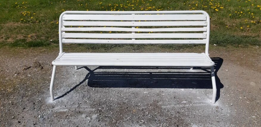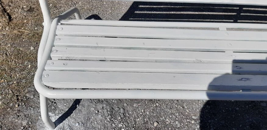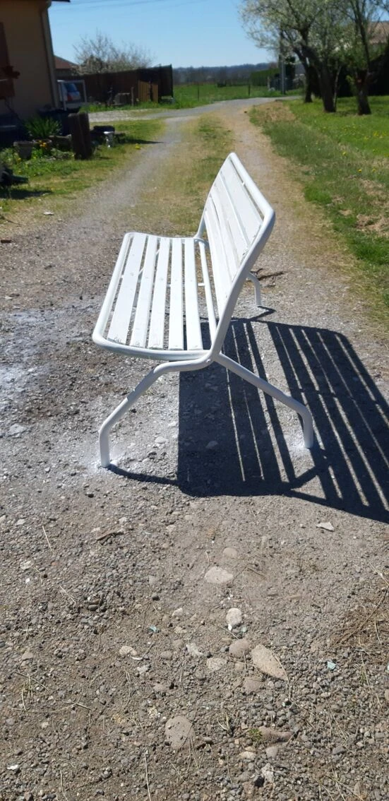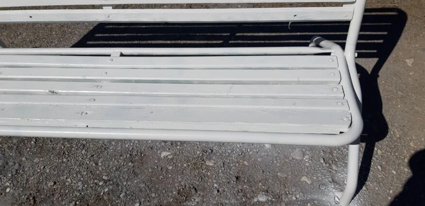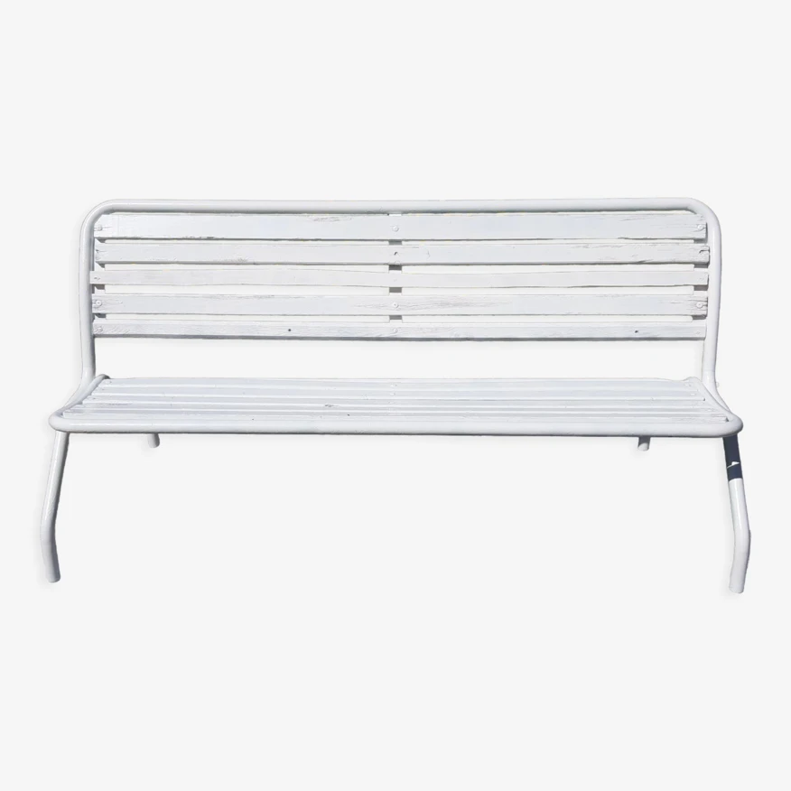 Banc fer et bois des années 50 repliable, haut: 77 cm, haut d’assise: 43 cm, long et larg: 157 cm sur 70 cm, poids: 30 kg, trés bon ètat, .