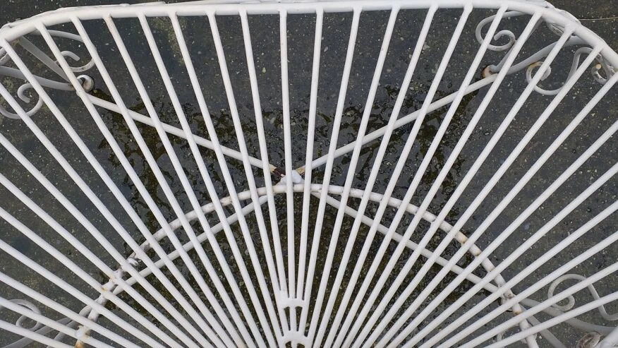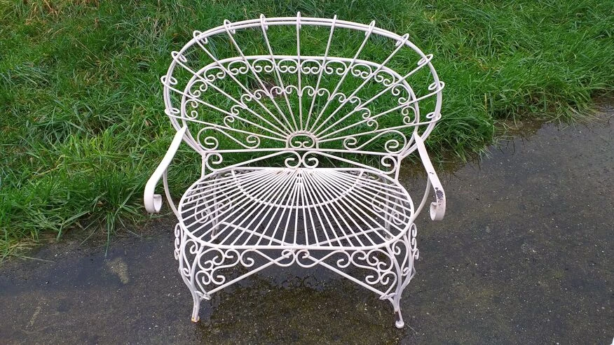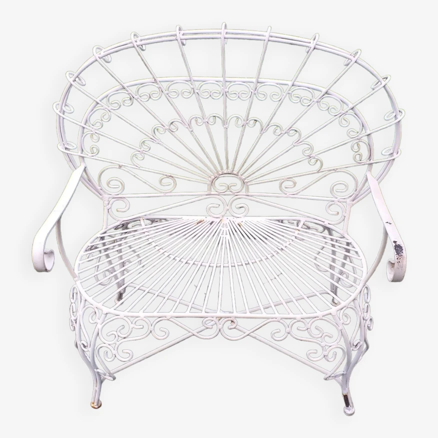 Banc causeuse paon en fer forgé salterini vintage bon état à noter quelques traces d’usages et de rouille sur certaines parties, stable.