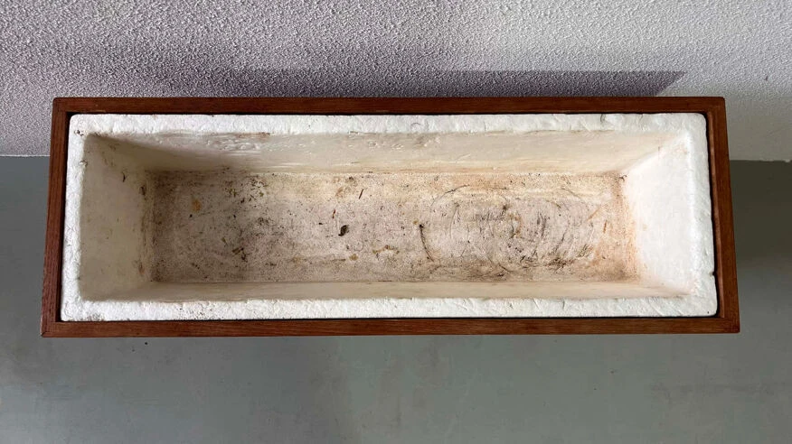 Ceci est lâche et pourrait être remplacé par un récipient en zinc ou simplement une étagère en vrac sur le fond.