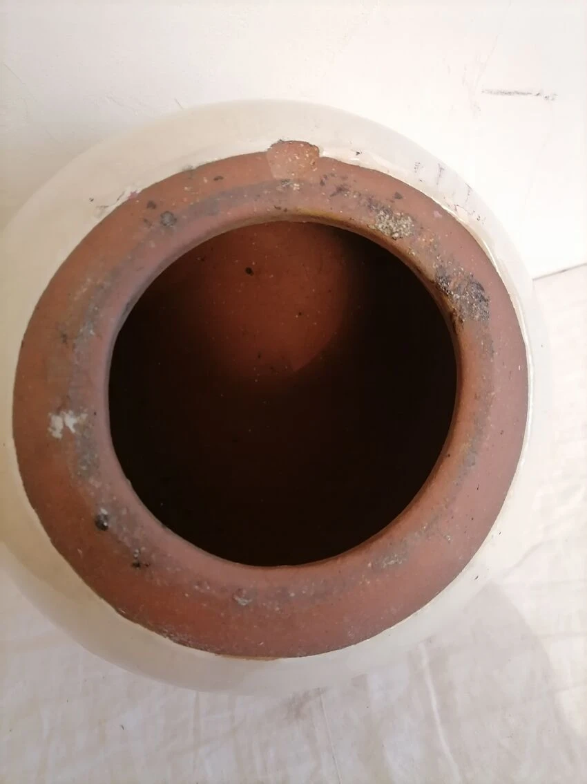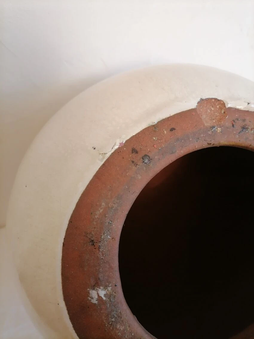 Boule ou sphère de jardin en terre cuite vernissée.