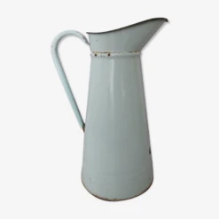 Magnifique broc ancien en émail vert d’eau avec un liseré vert plus foncé sur le col.