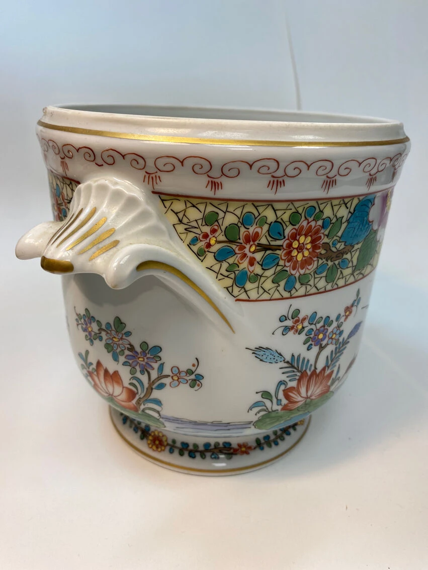 Cache pot en très bon état, peint à la main de motifs japonisant kakiemon.