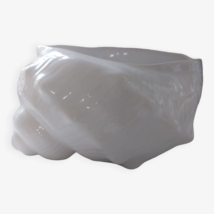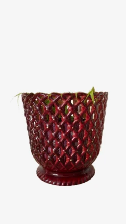 Cache-pot XIXème Porcelaine De Paris Peint D'Hibiscus Sur Fond Rouge