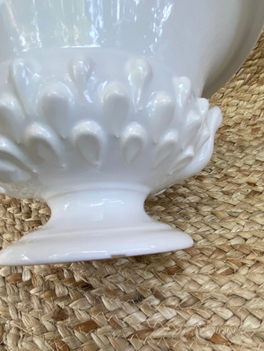 Ravissant cache-pot en céramique émaillée de couleur blanche.