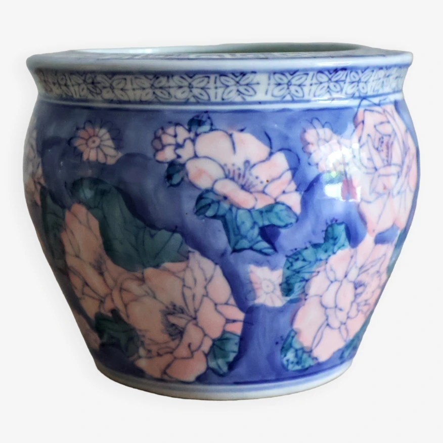 Très joli pot ou vase à plantes en céramique bleu et blanc en porcelaine.