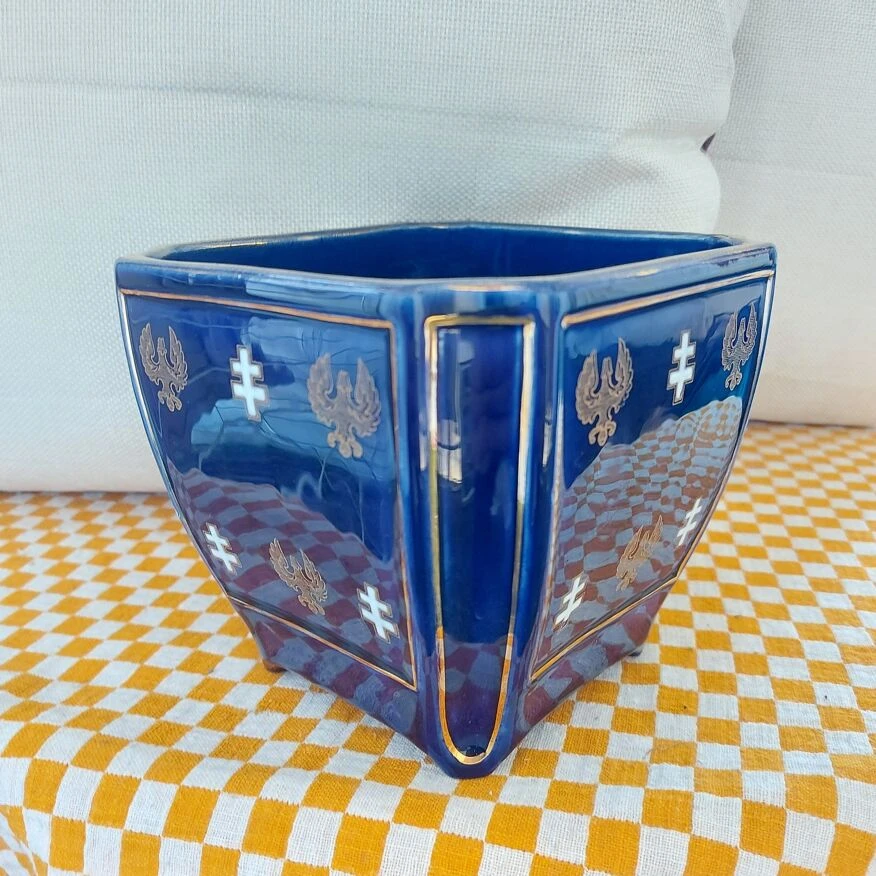 Bleu profond, croix de lorraine émaillées.