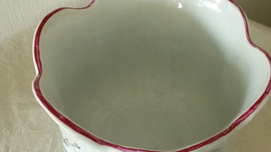 Cache-pot XIXème Porcelaine De Paris Peint D'Hibiscus Sur Fond Rouge