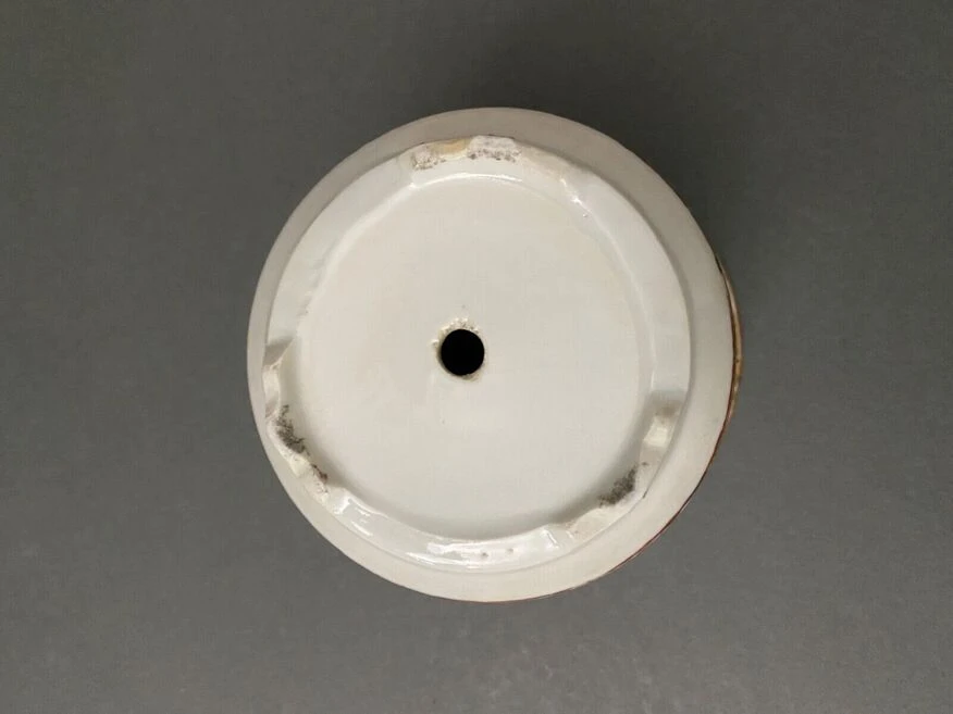 Notons des manques, des taches et des marques à l’intérieur dans le fond du pot et de la soucoupe, des traces d’usure, des rayures, cependant il reste dans un état général acceptable pour quelqu’un de non pointilleux.