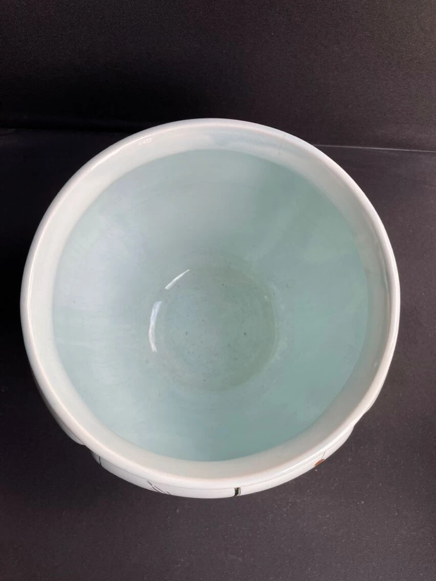 2608 – très décoratif, des années 1960’s, ce grand cache-pot en faïence de gien signé en bon état.