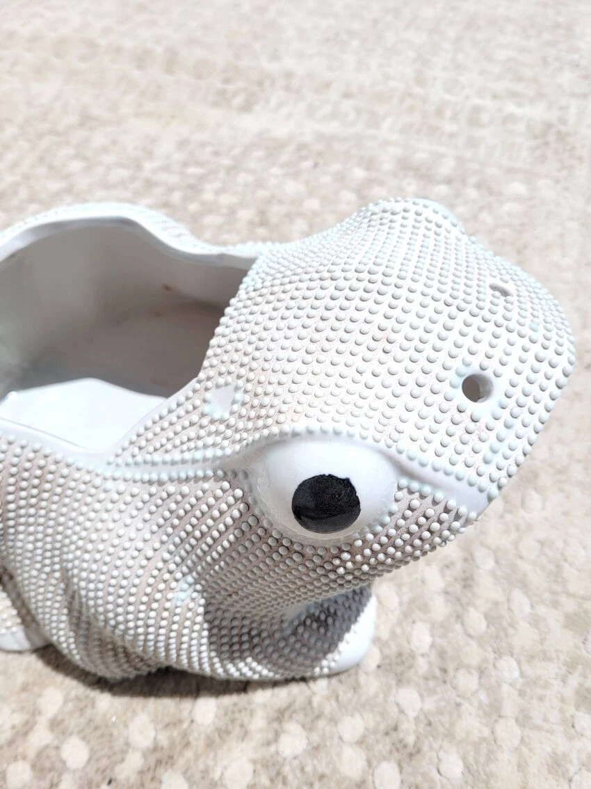 Le corps en porcelaine est décoré / texturé de rangées de petites boules émaillées.