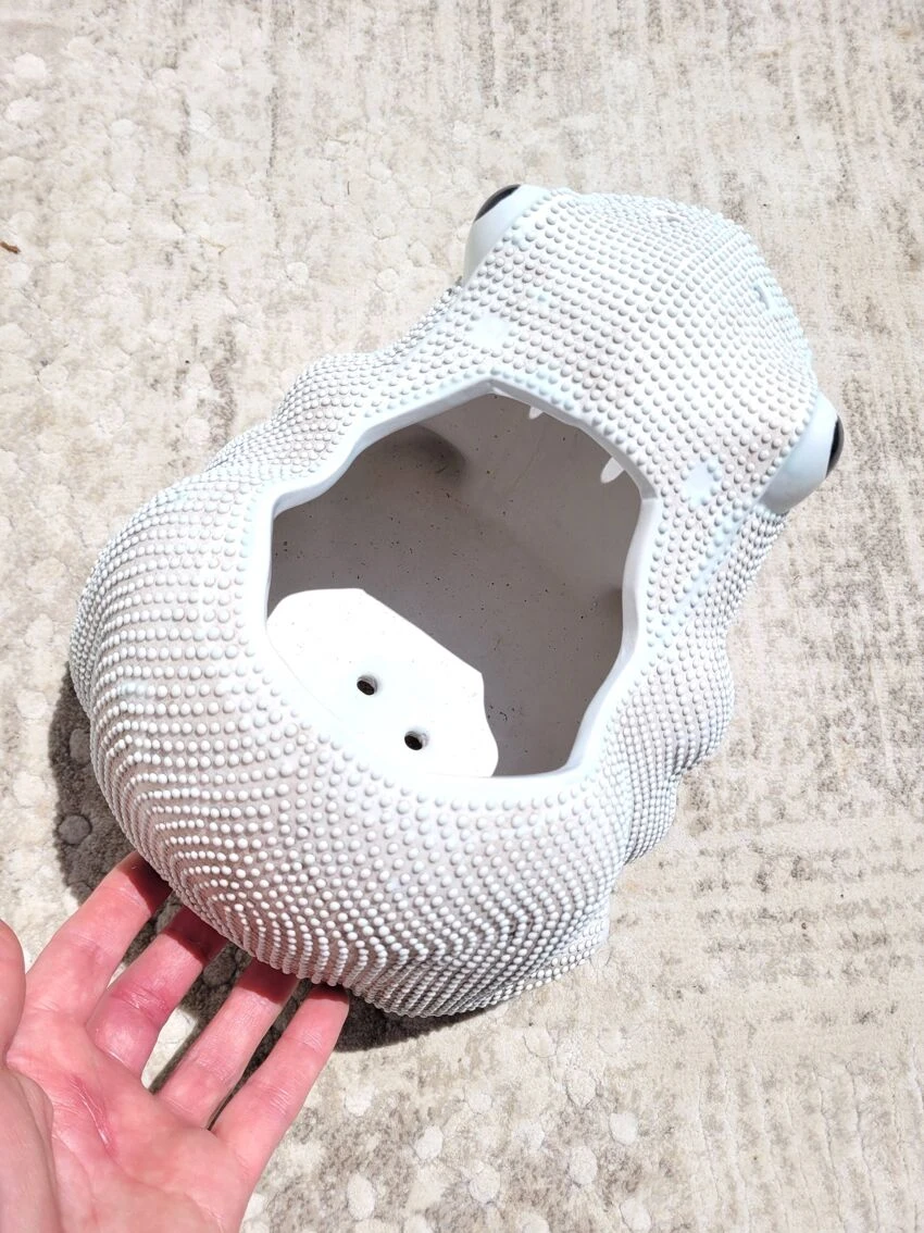 Il y a deux trous dans le fond permettant de laisser couler le trop plein d’eau.