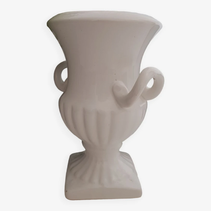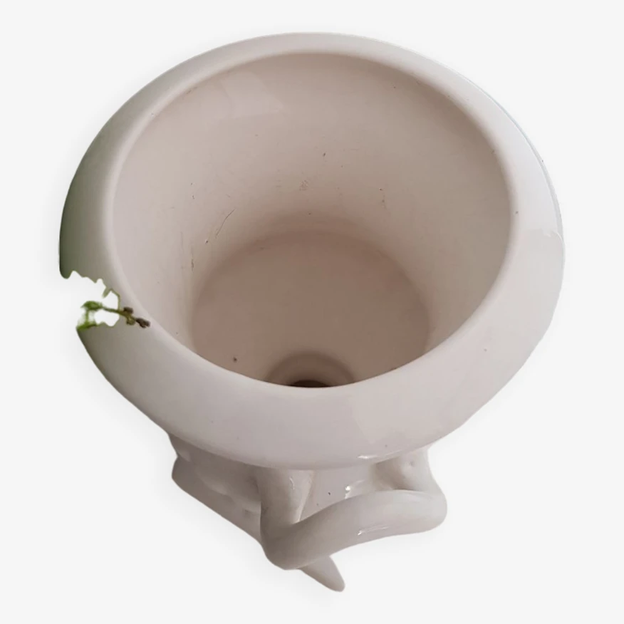 Très beau cache-pot, de style médicis en faïence émaillée de couleur blanc.