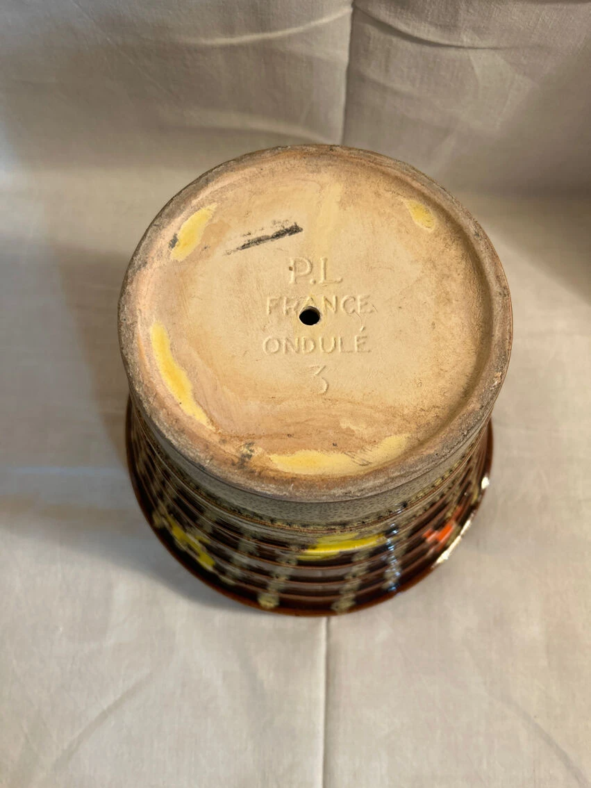 Cache pot ondulé poët laval france en céramique vintage année 50 très rare en parfait état.