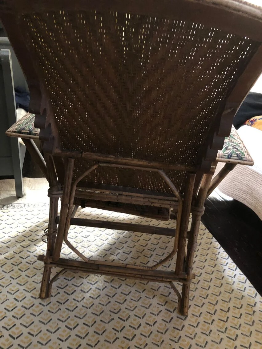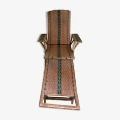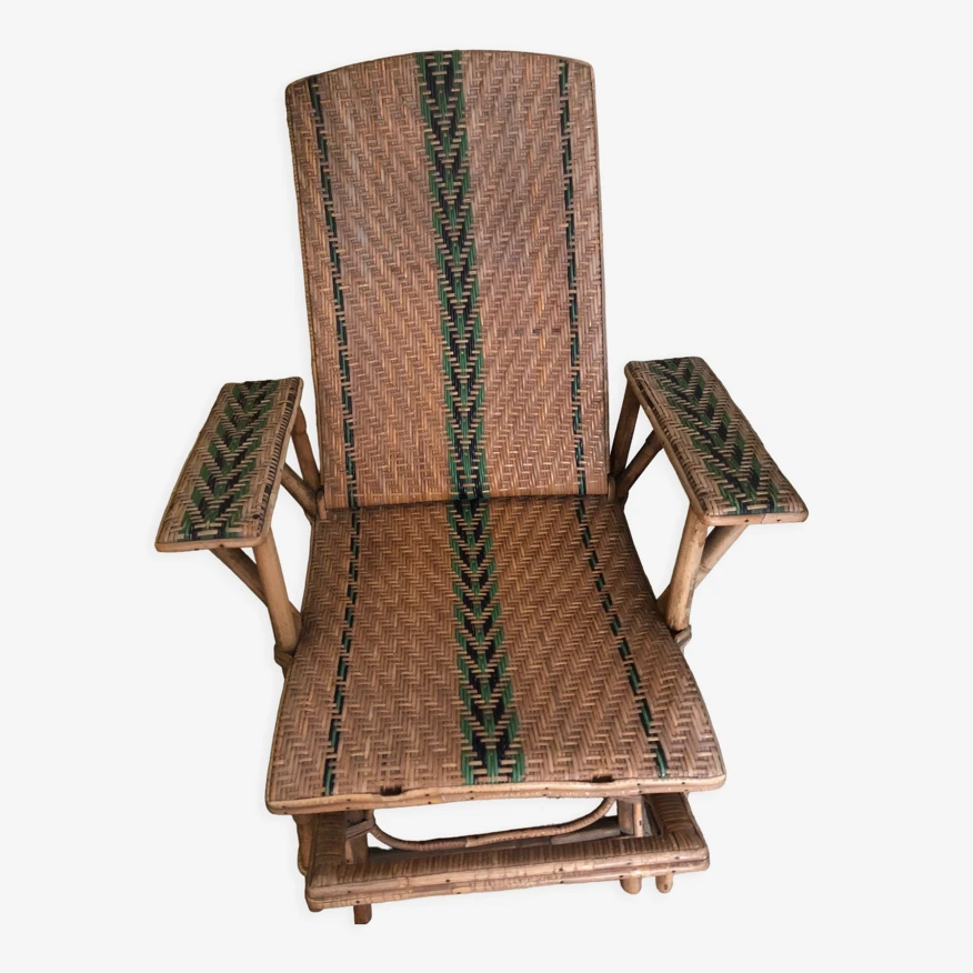 Chaise longue en rotin avec repose pieds amovible des années 1900.