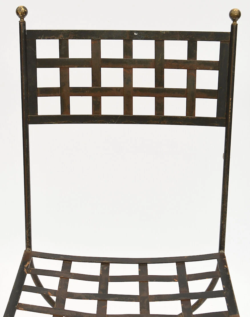 Chaise en fer noir, le dossier et l’assise figurant des croisillons, le piètement de forme curule.
