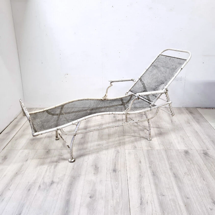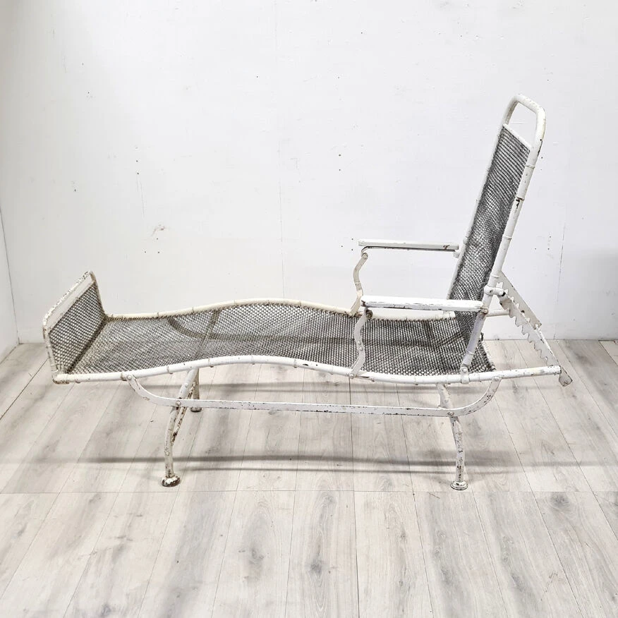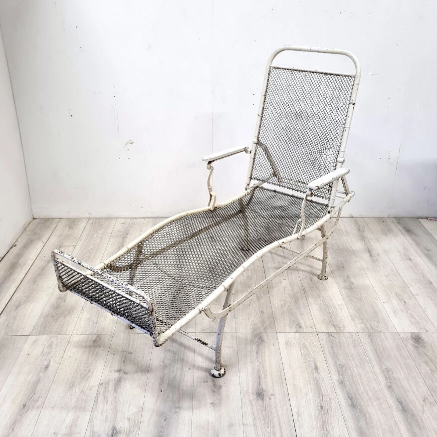 La chaise a un cadre en acier avec accoudoirs en bois.