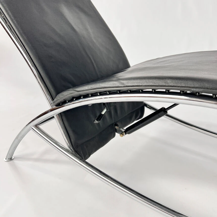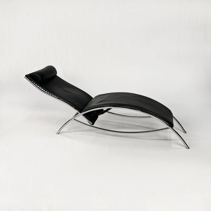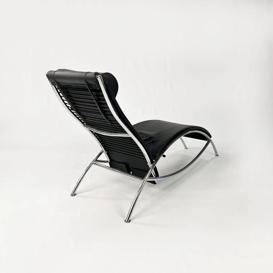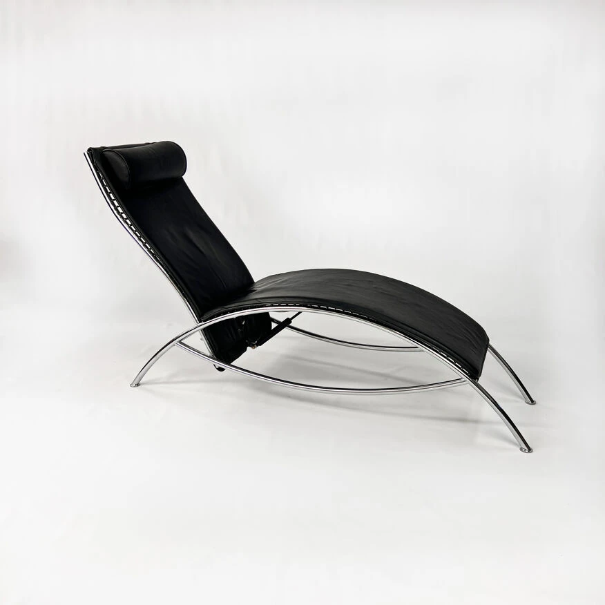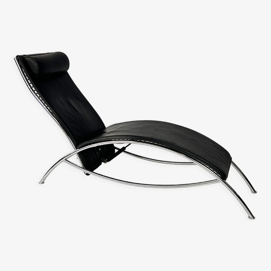 Chaise longue en cuir noir postmoderne.