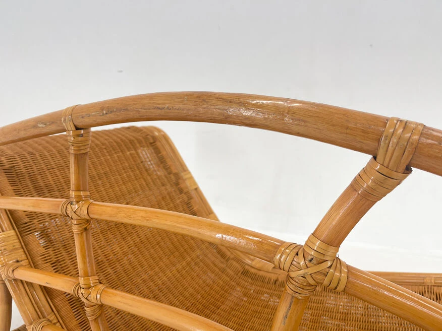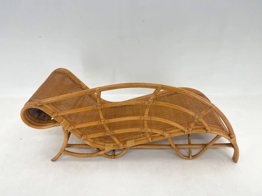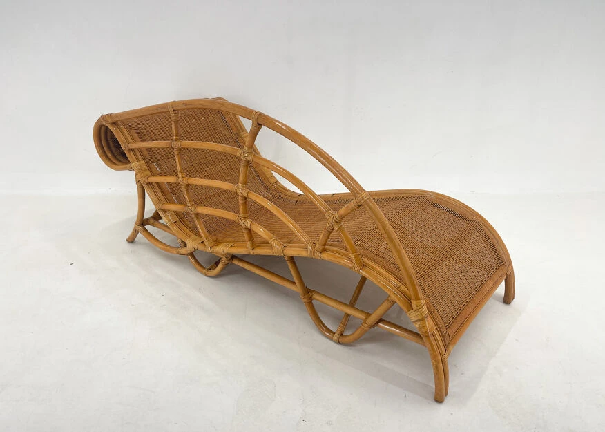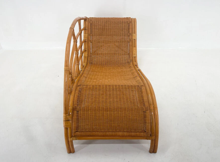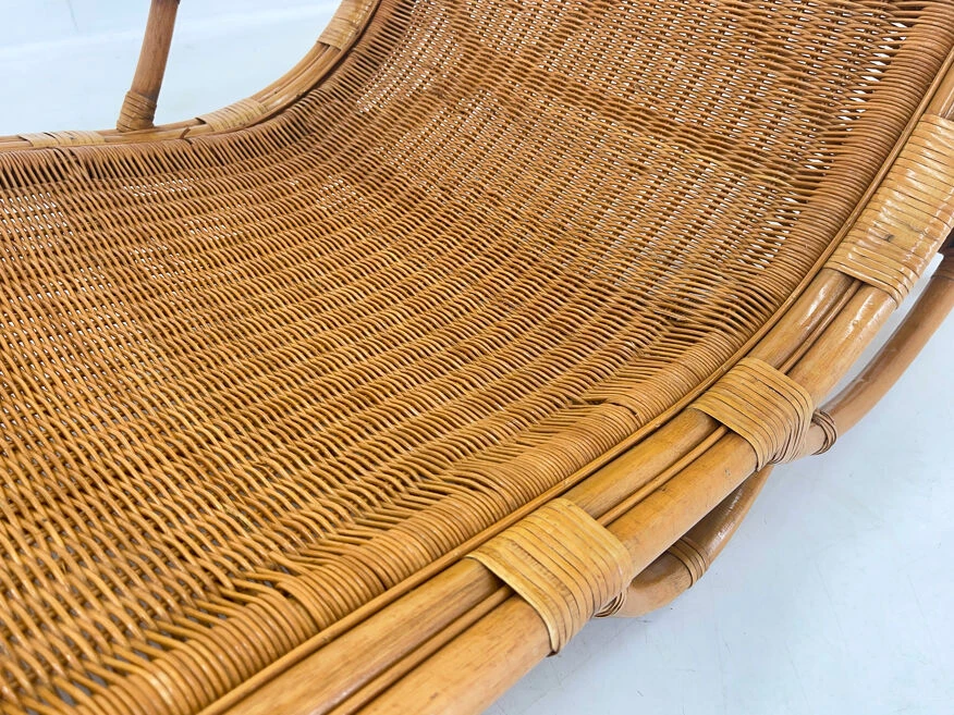 Chaise longue / chaise longue vintage en rotin fabriquée dans les années 1980.