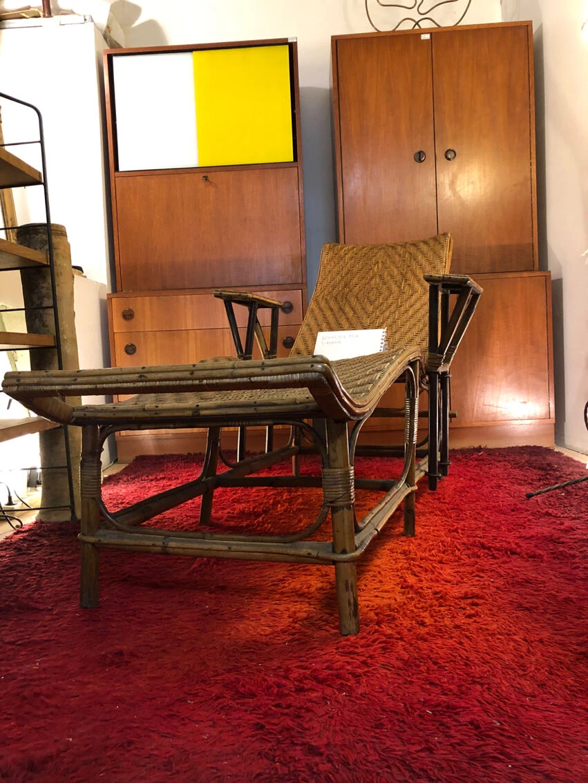 Chaise longue en rotin 1890 attribué a perret et vibert.