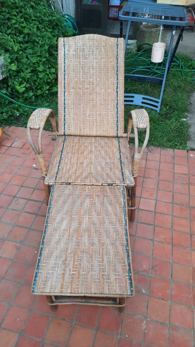 Chaise longue en rotin vintage.