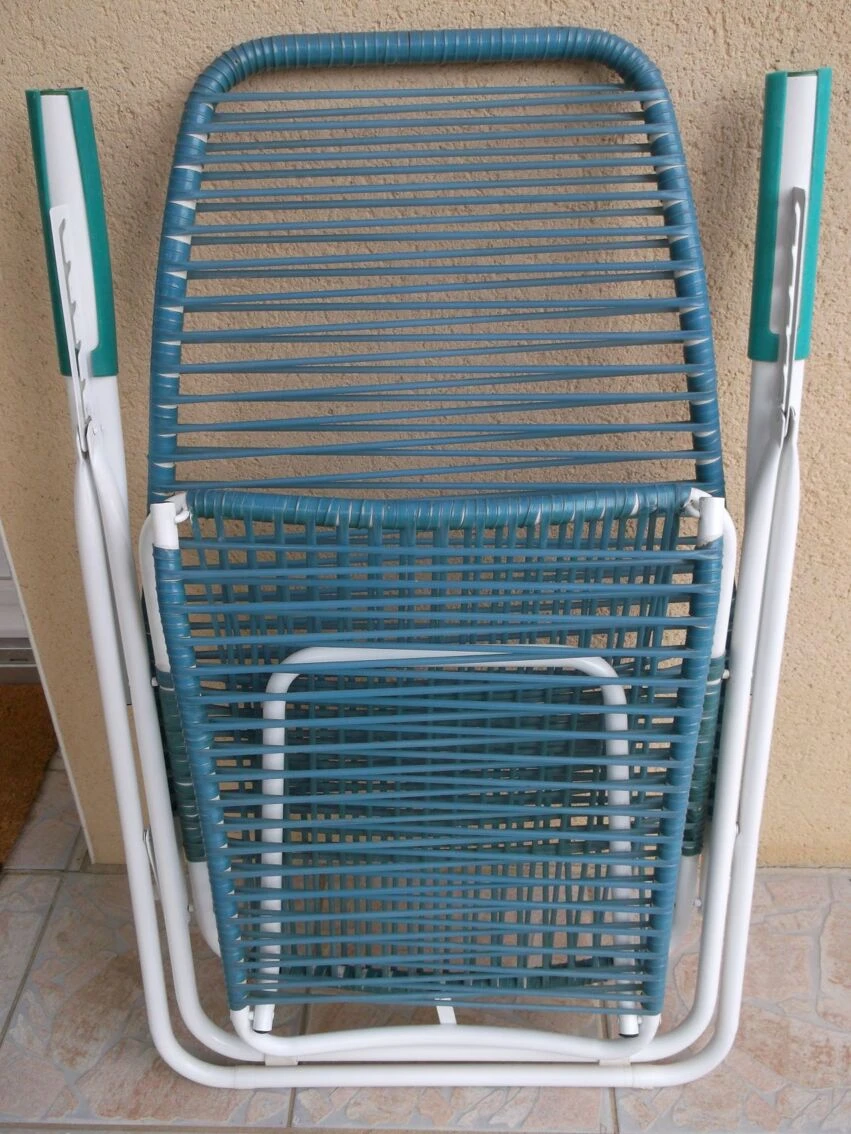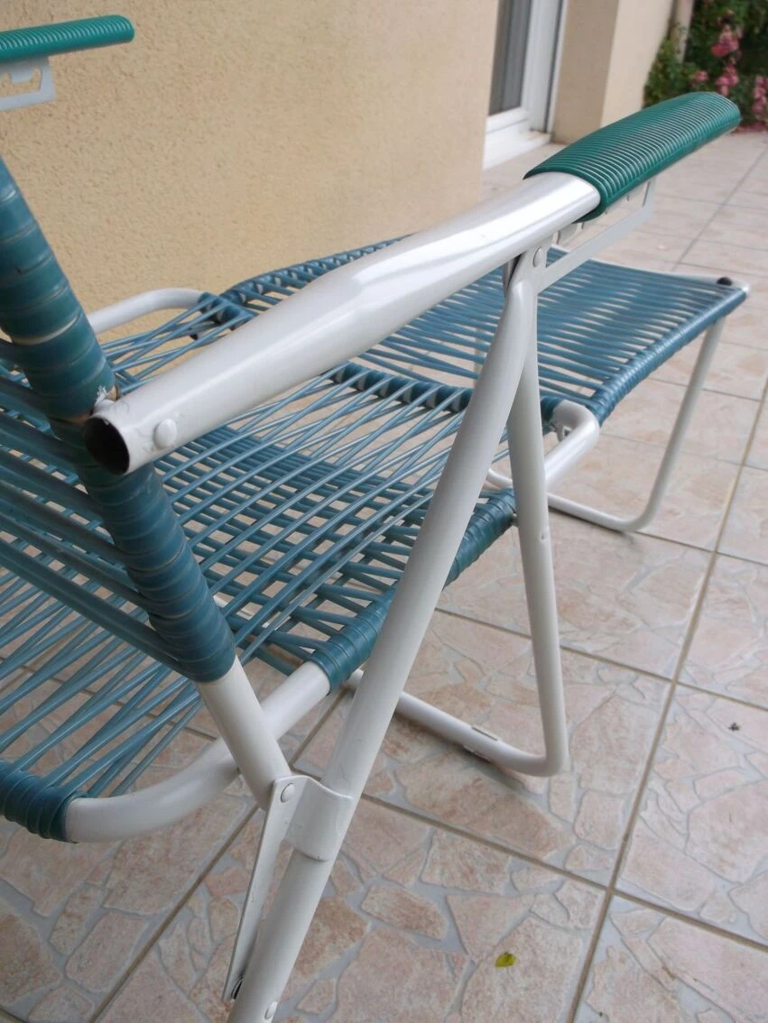 Fil scoubidou => elastique bleu d’assise et dossier en très bon état.